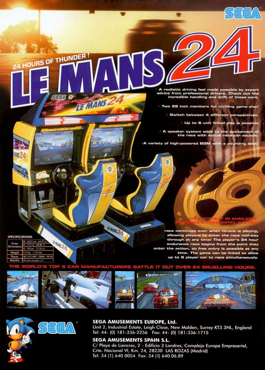 Le Mans 24 is an arcade racing game that only released in Japan. With a button combination, you can play as Sonic, who drives a buggy-like vehicle instead of a car.