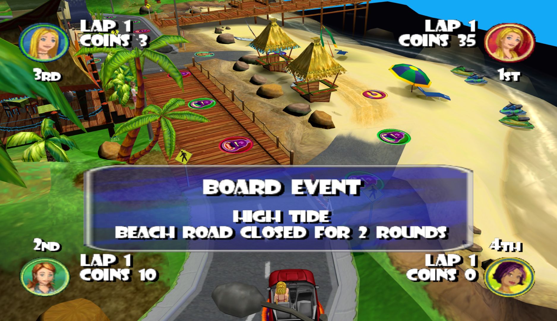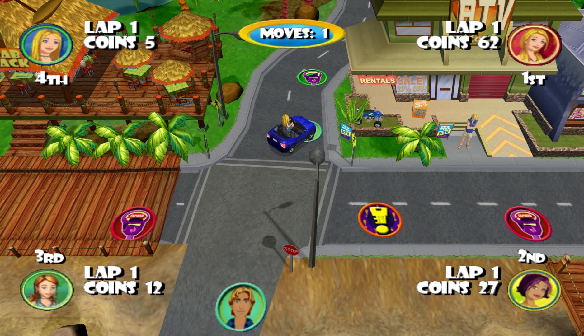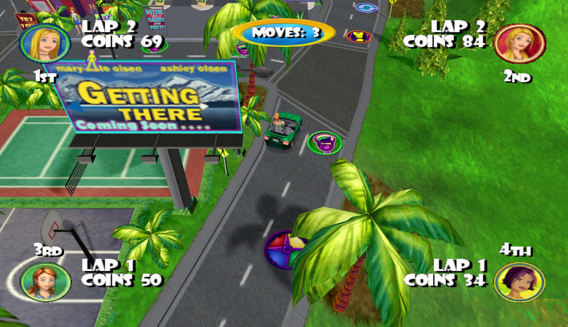 Sweet 16: Licensed to Drive is based on the twins passing their driving test on their 16th birthday and planning a party. This takes the form of a Mario Party clone, where you roll a dice and have to watch your chosen character (Mary, Kate, Ashley or a fourth girl) very, very slowly make their way to the selected spot. You can’t speed things up or skip things – even on CPU’s turn. The spots are the kind of thing you see in really bad roll and move games, including going back spaces and missing turns. This means there’s a lot of just waiting around and doing nothing.