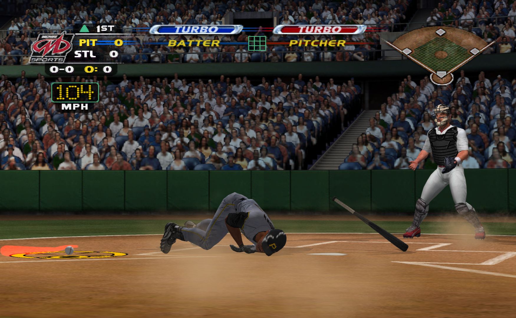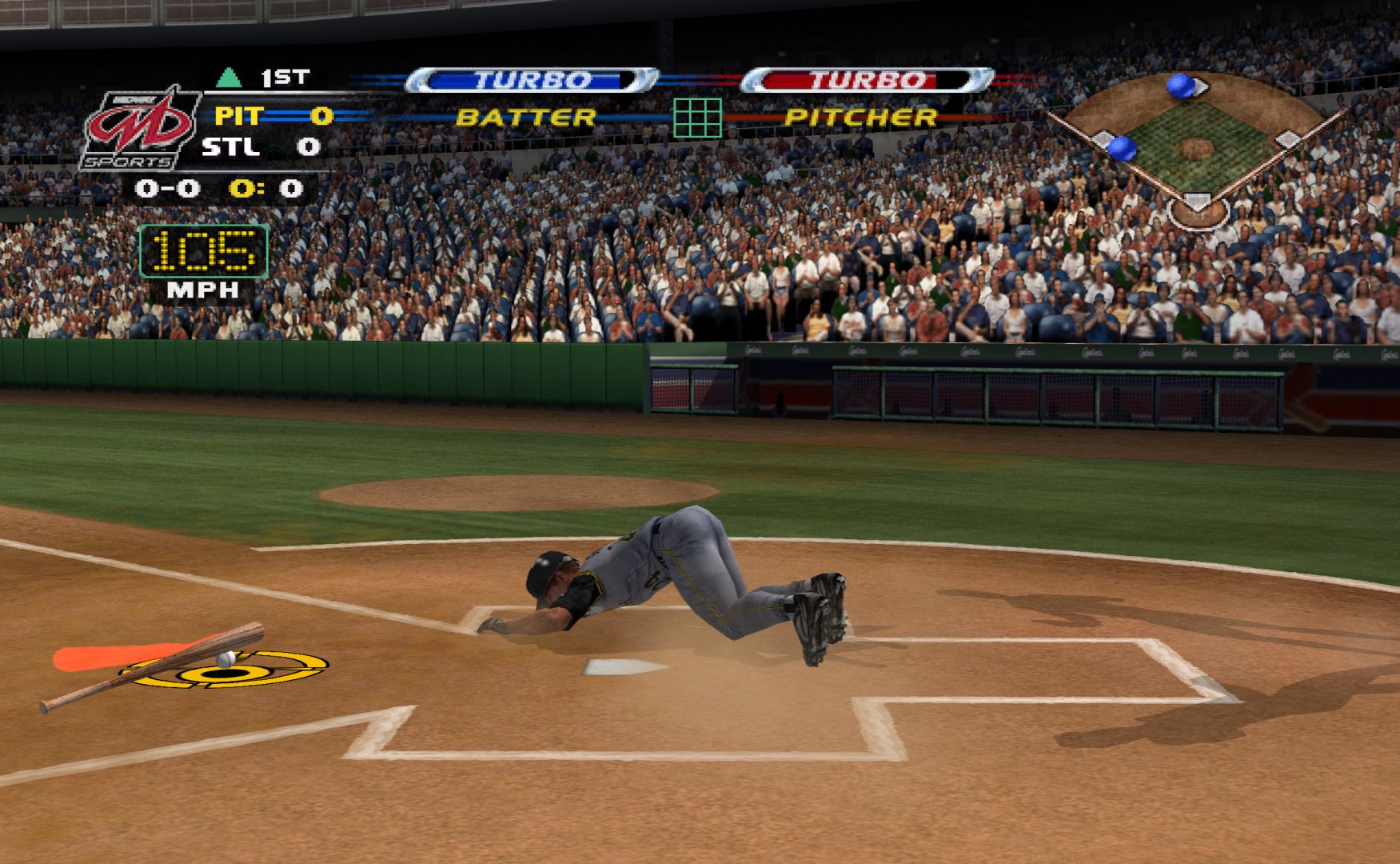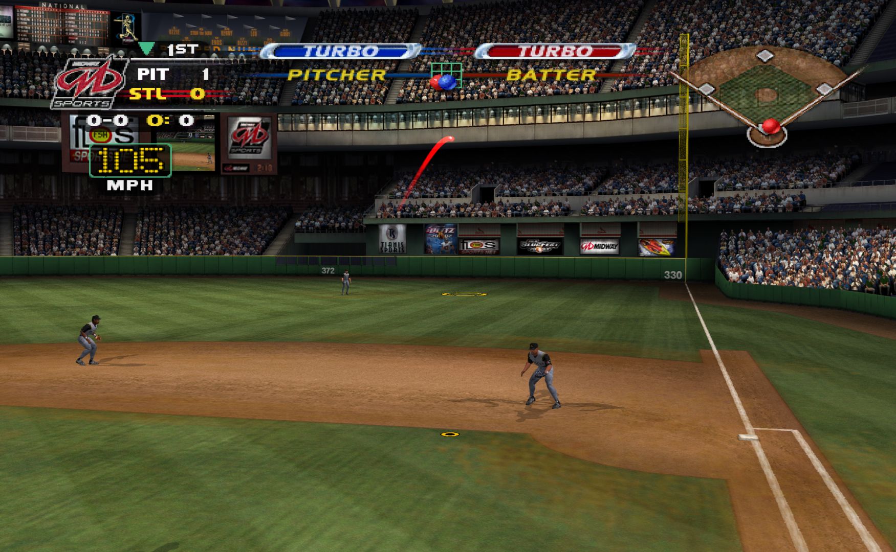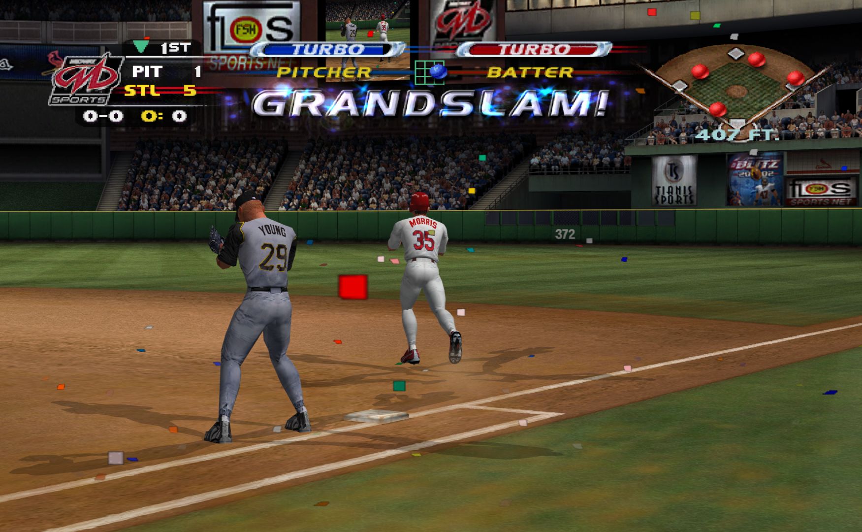 With an interface very similar to Red Card, this is Midway’s attempt to make a sillier version of baseball. The core mechanics aren’t as solid as Red Card, though, as aiming the bat is much more difficult without a cursor – luckily, hitting is much more lenient as this tends to go for higher than usual scores, and full of some fancy over the top effects – well, as over the top as you can get while still keeping it close to baseball.