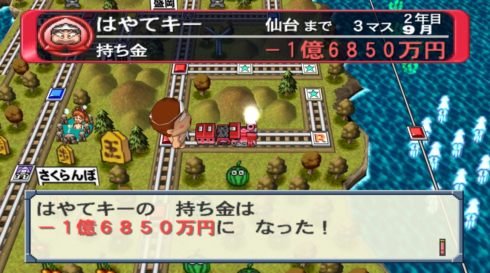This is another Japanese game that I don’t really have much to say about it. Mainly because I’ve already talked about this roll and move board game. Landing on the special station (which is selected at random) is still massively better than engaging with the building owning portions of the game, as you not only win a massive amount of money, but a money-sucking demon attacks the other players.