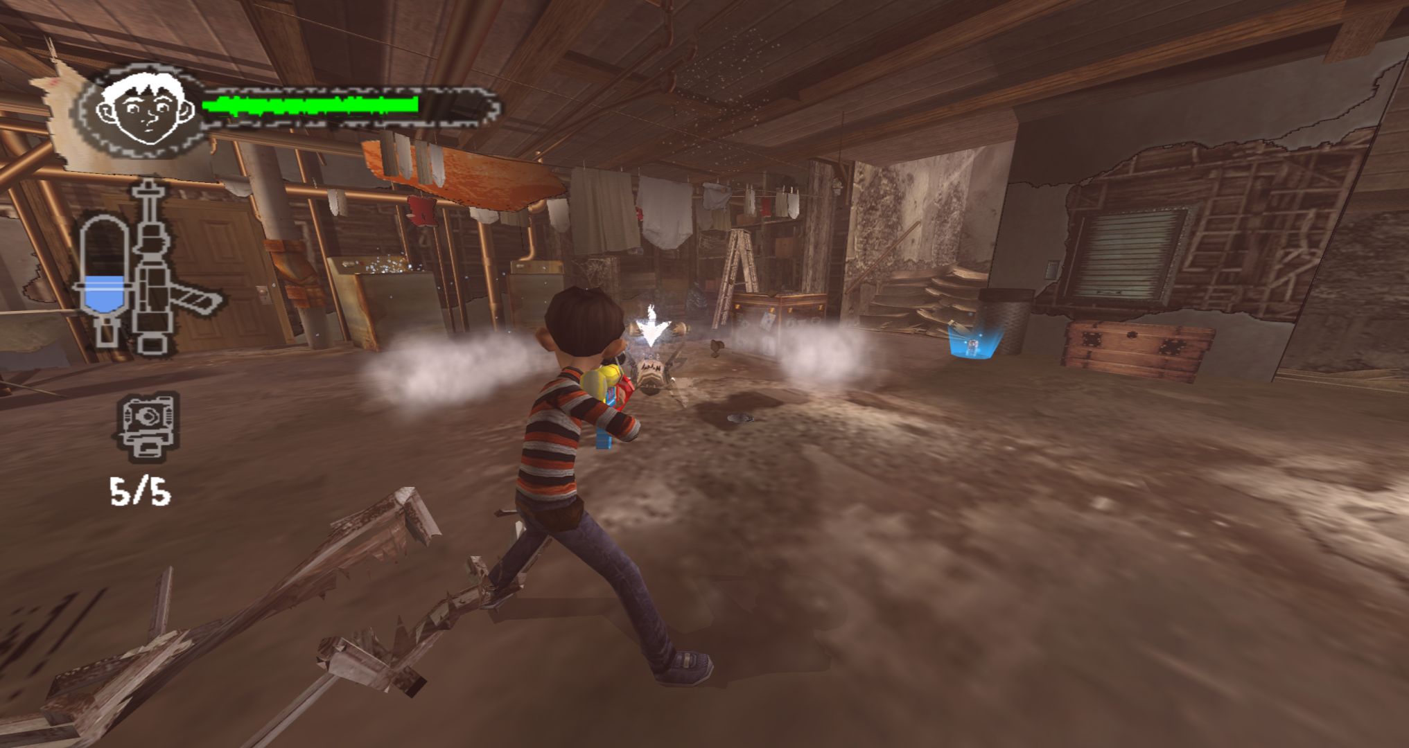 You also use the A Burton to shoot your infinite water gun (just straight forward, there’s no aiming other than a wonky lock-on) and R to use your melee attack which, again, just feels completely wrong. The game has the right vibe and an interesting premise, but these controls are just a nightmare to play.
