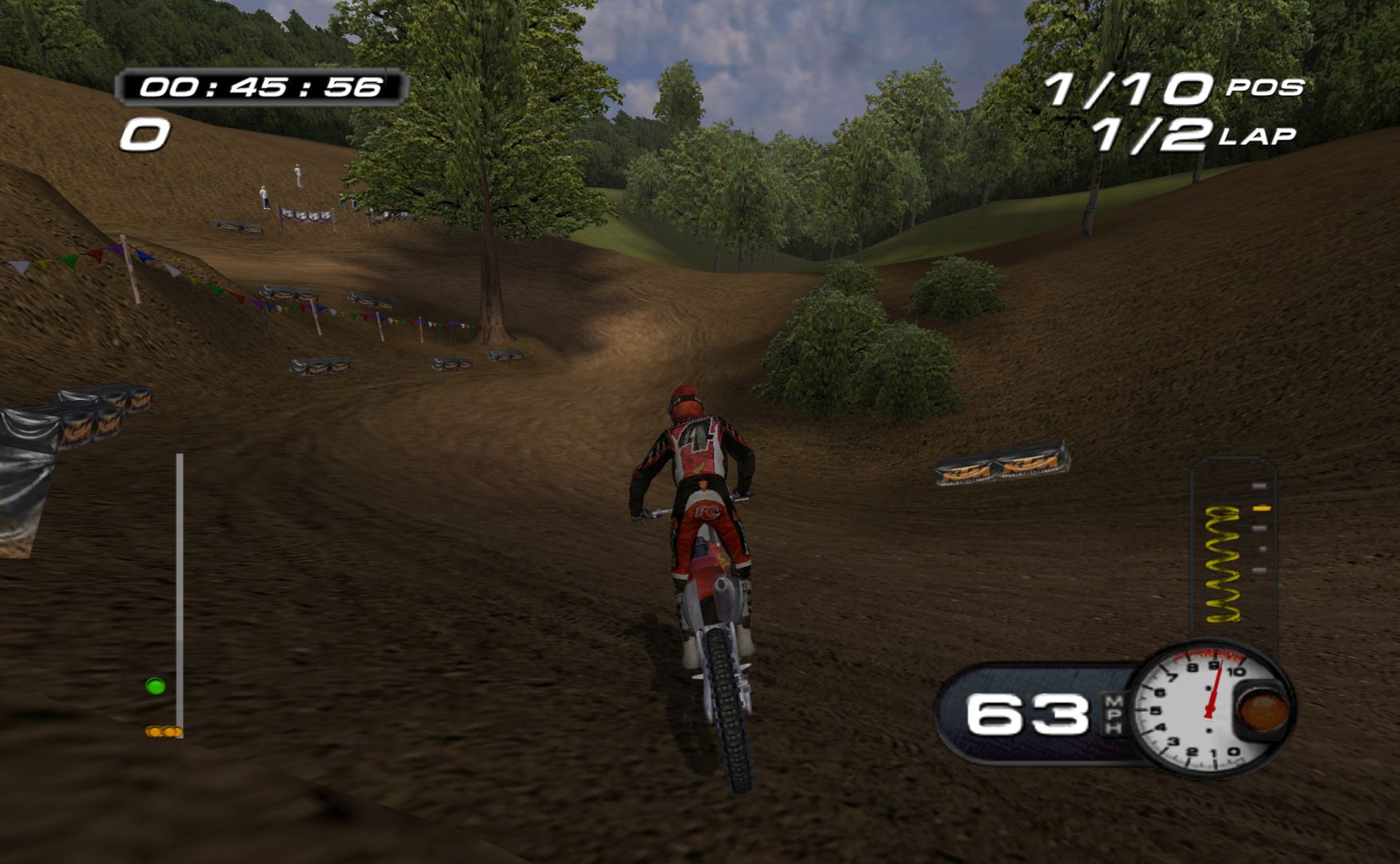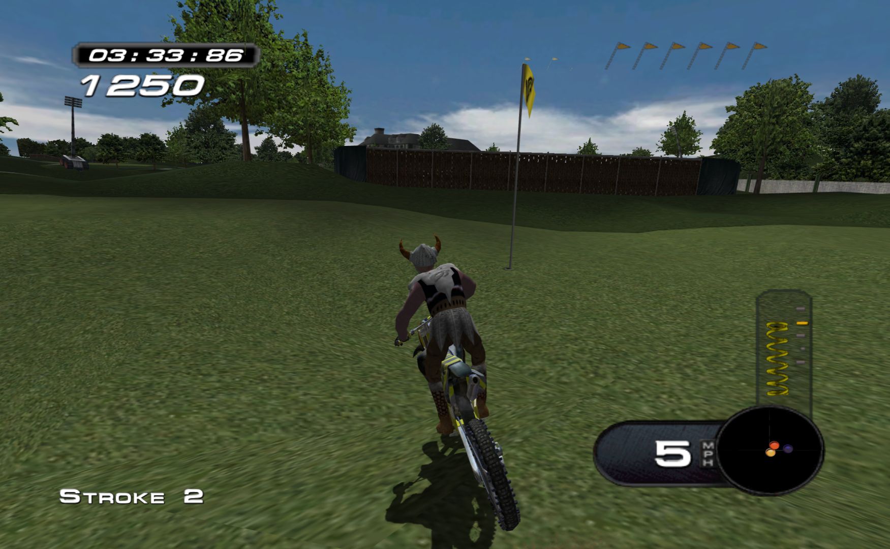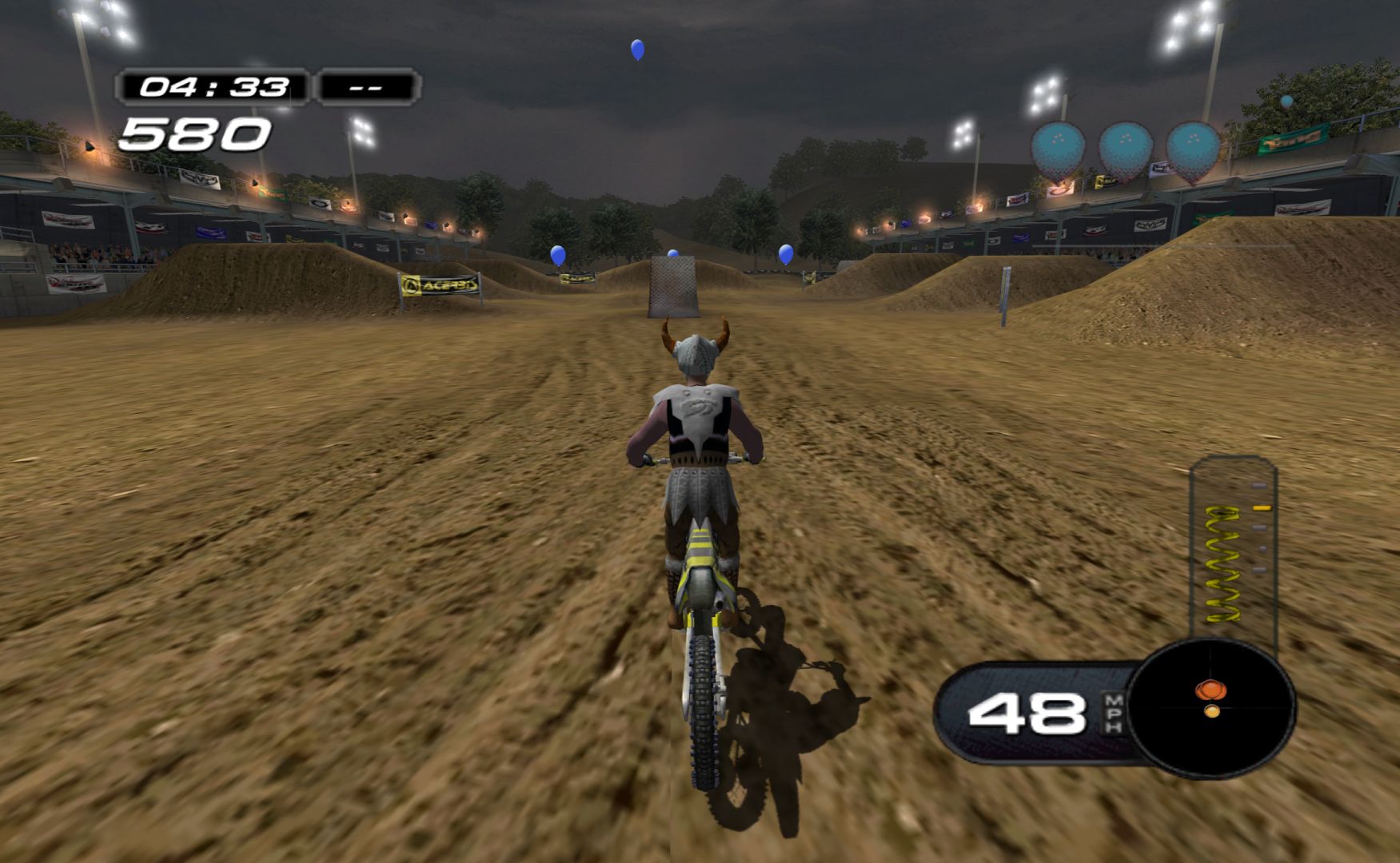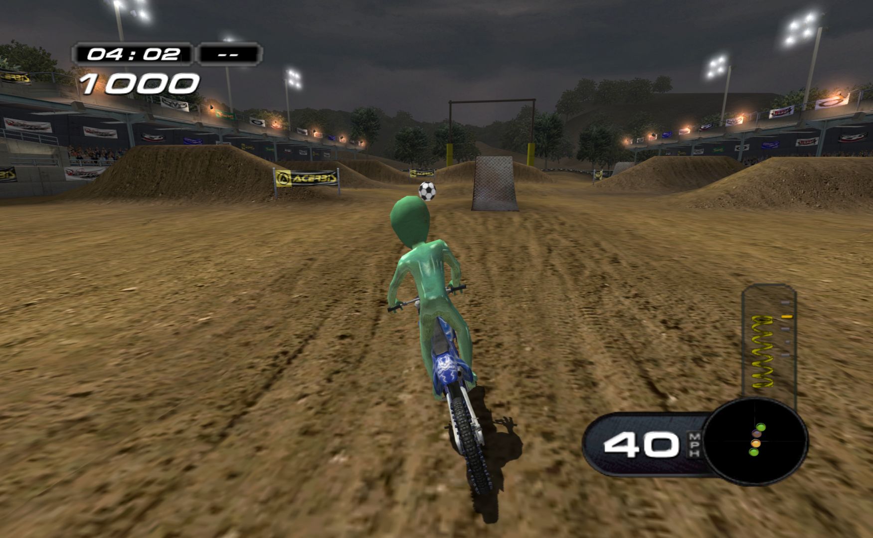 Which is a shame, as MX Superfly features some nice tracks and features. While it never goes as far as Excitebike 64 for track variation, it’s still more than a bunch of compressed stadium tracks, with other modes like freestyle and a host of minigames, like keeping balloons in the air, football, pizza delivery and more.