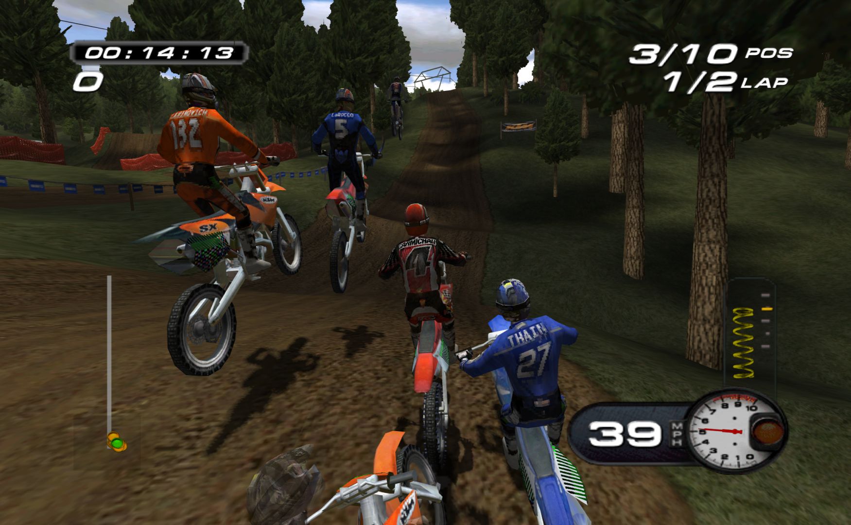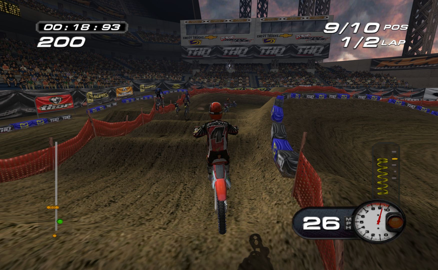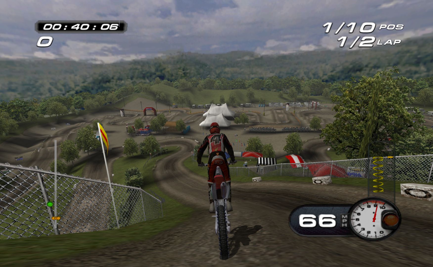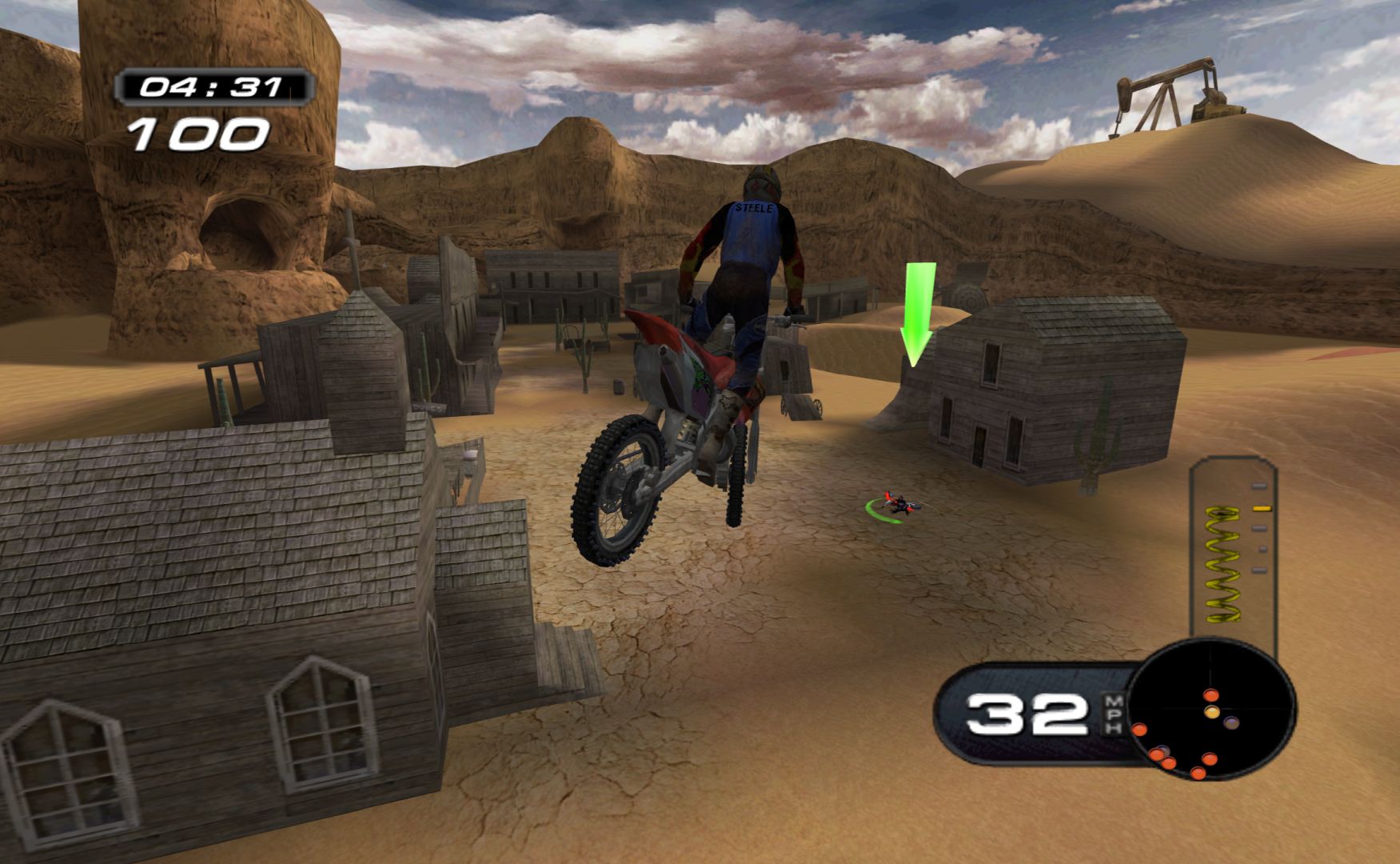 Which is a shame, as MX Superfly features some nice tracks and features. While it never goes as far as Excitebike 64 for track variation, it’s still more than a bunch of compressed stadium tracks, with other modes like freestyle and a host of minigames, like keeping balloons in the air, football, pizza delivery and more.