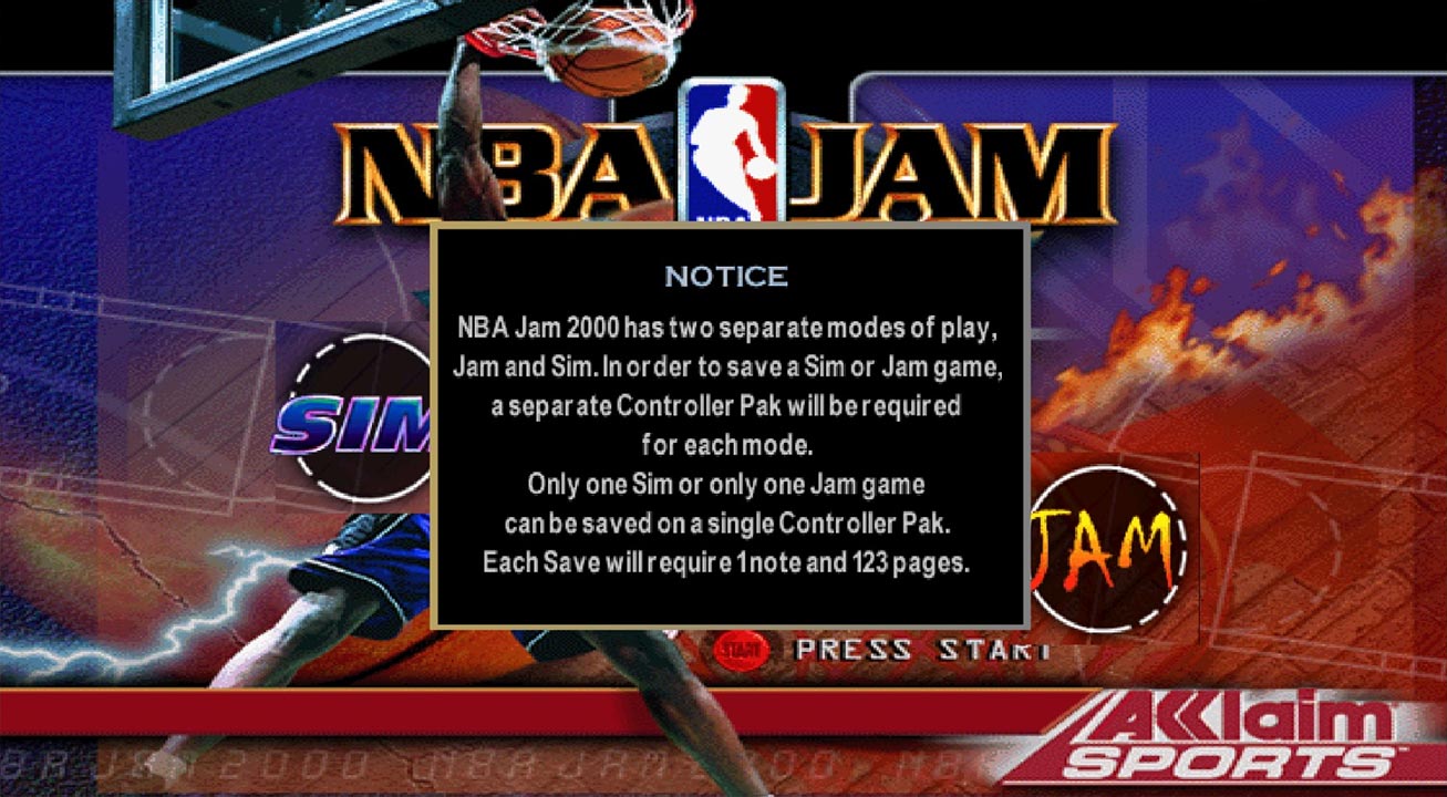 That is due to a proper “Jam” mode, which brings back the 2-vs-2 arcade style, similar to the older NBA Jam games. In the previous N64 NBA Jam game, it was just the regular game with different settings, now it’s more of its own thing (but still not a good excuse for the Controller Pak issue).