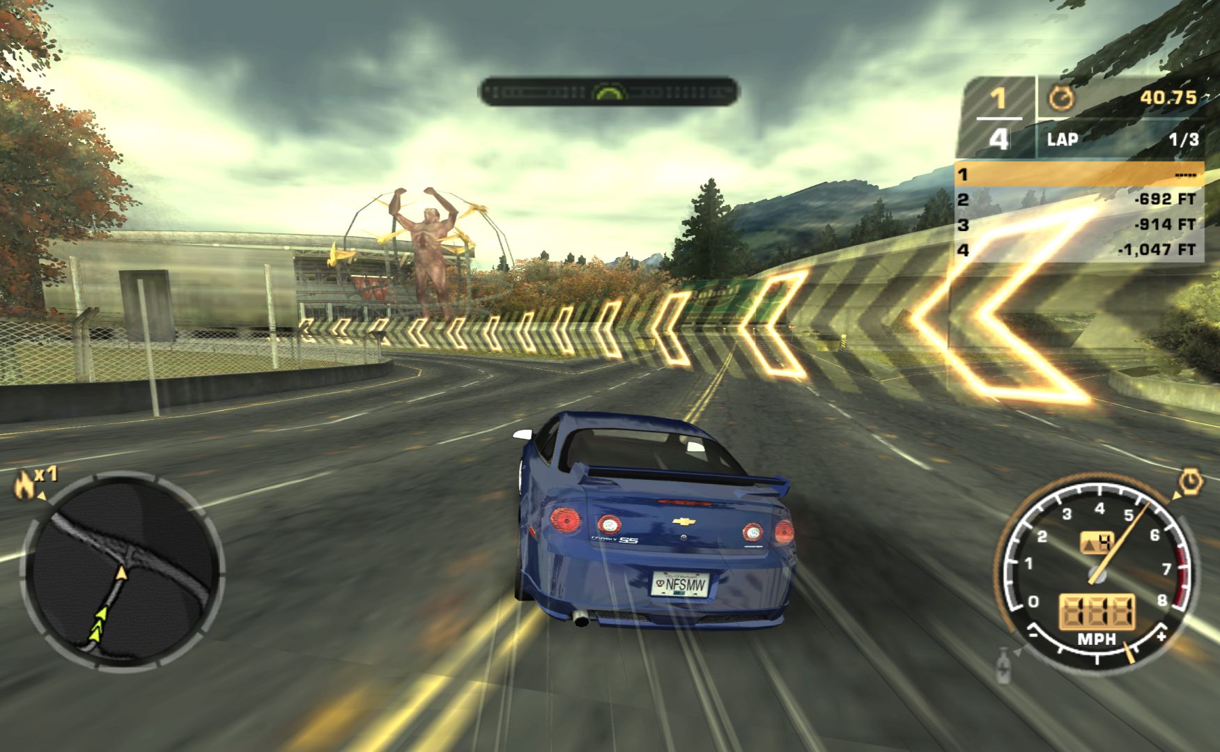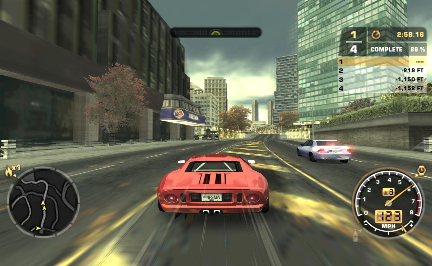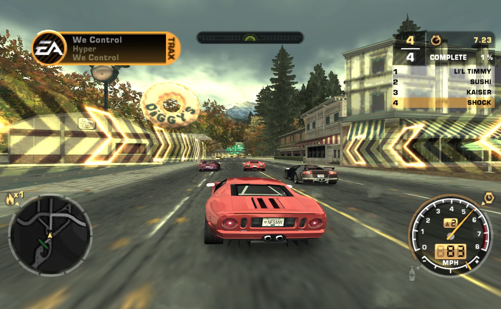 The start of Most Wanted confused me a lot. You start off by watching your character race and take control for 20 before your car fails. Then you’re thrust into a flashback to a week earlier, as you compete in a couple of 1-on-1 races before doing the opening race again not even 10 minutes later. Oh, and I had to look into why the music wasn’t working during this and it turns out it’s just not in this bit of eve game. Strange.