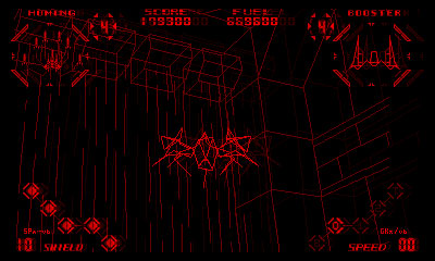 From the Virtual Boy launch titles, Red Alarm is the only one that takes place in a 3D space, letting you fly around in all angles. The levels are still very long corridors, but you still have full movement. The left D-pad turns you around, the right D-pad provides a dodge while L lets you turn faster. You don’t need to hold down a button to accelerate (other than boosting or reversing), instead you use A and B to set the speed level and let go. It controls quite nicely, and is quite enjoyable, although quite difficult.