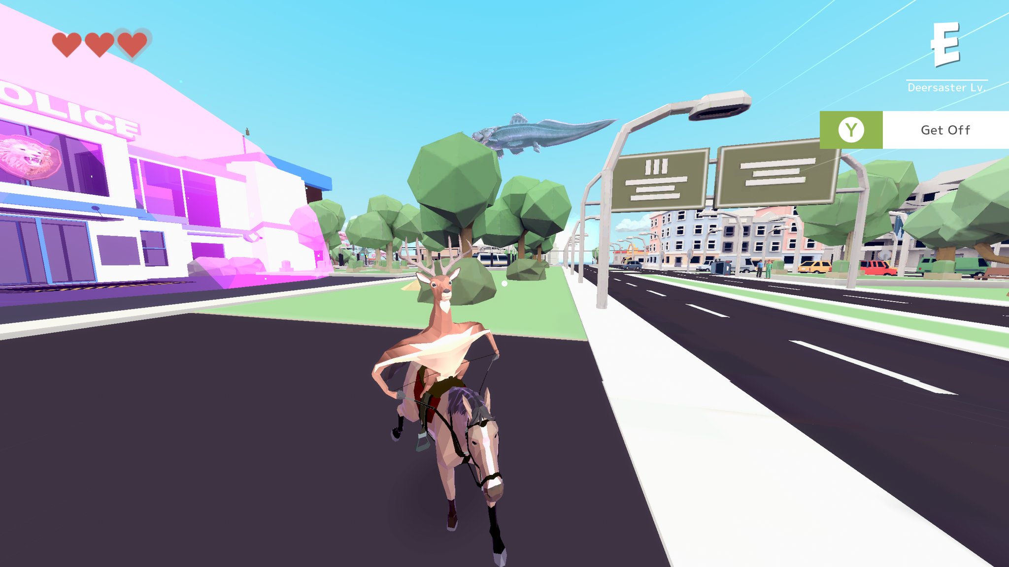 Deeeer Simulator is just…random. It’s not particularly funny, and it’s not all that fun to play. You play as a human that has been transformed into a deer, and the main “aim” is to cause enough damage to attract waves of cops, then defeat them to unlock a boss. Most of this is done by collecting weapons, which all stack up (the first time this happens is one of the few moments which can cause a smirk, due to how they all just attach to parts of the deer). As you collect more of the same weapon, it increases in power, so you’ll get more and more powerful as you destroy stuff.