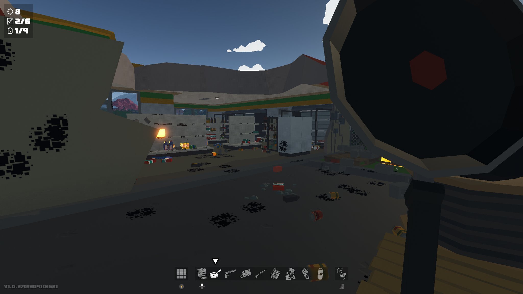 Weapons start from a clipboard, hairspray (with lighter) and a pistol, and throughout the levels you will find assault rifles, C4, hedge trimmers, frying pans and more. There are a few non-aggressive items such as cheese puffs (which serves as a lure but can also change spider type), energy drinks and flashbangs.