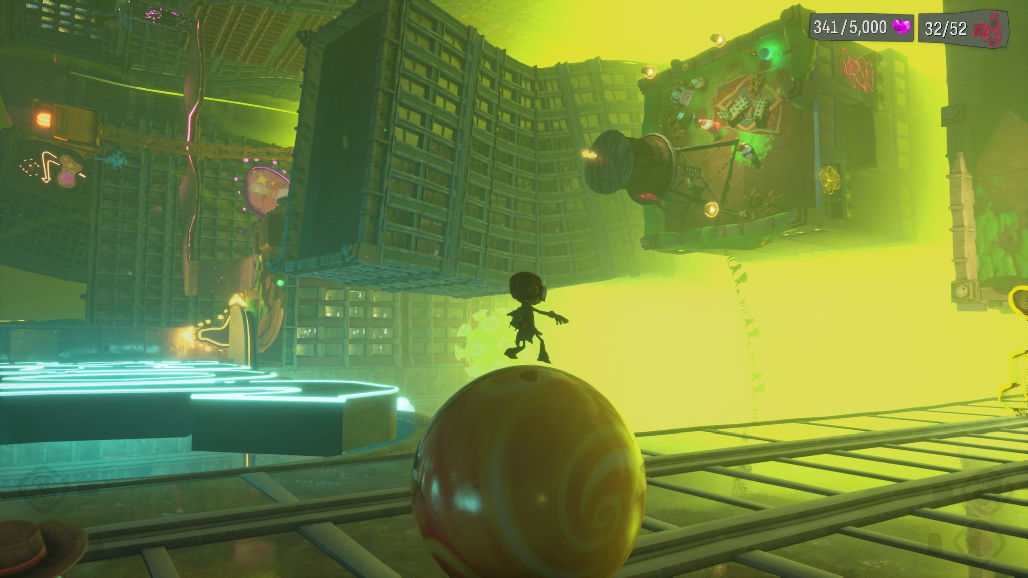 Platforming in Psychonauts 2 feels very precise. The levitation is more predictable, but with the downside of being less useful than the first time. Instead, this leads to Mental Connection, a new ability where you can grapple between “stray thoughts”. This ability is introduced in a level where some of the connections list subjects and linking two together can change their thoughts on a subject. Throughout the level you have a horrible feeling that you’re doing something terrible (it shows what peer pressure can push people to do), and you feel the desperation when you have to fix it later on, seeing the damage you’ve done to this person’ mind. That said, there are some connections that don’t “work”, but I found myself trying all the wrong pens first to hear the dialogue.