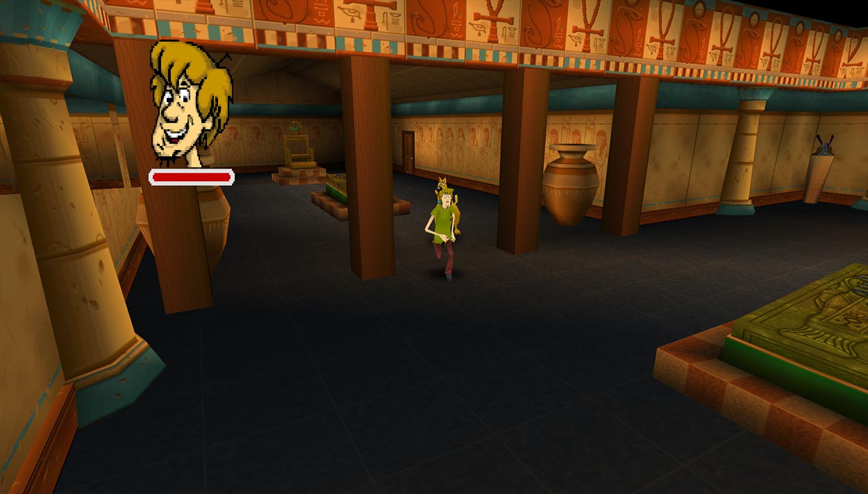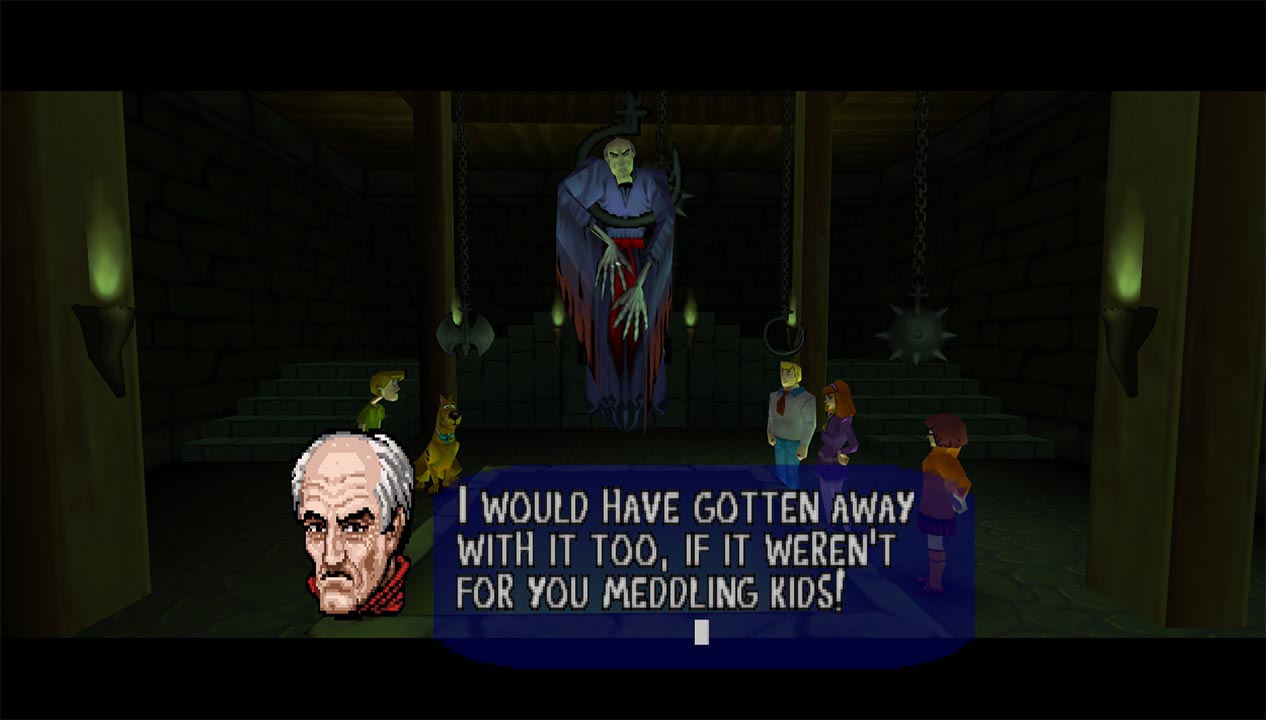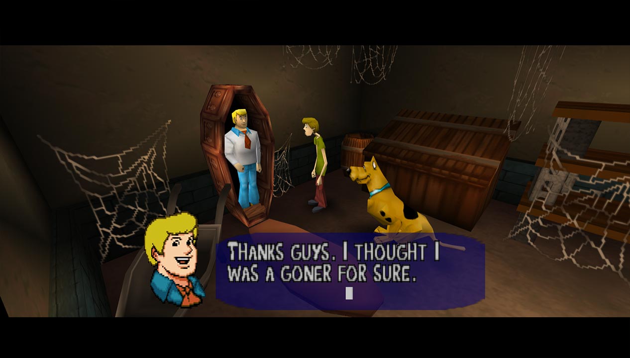 Even though there isn’t much to the game, and it contains some tedious stuff, there’s still some charm here. The visuals are nice and capture the show well, as does the music (with a few good renditions of the classic theme). There’s only a few small snippets of voice from Shaggy and Scooby, but the tropes in the dialogue (like Fred and the girls checking somewhere safe) are part of the charm of the show. There’s even a corridor full of doors that you can use to escape one of the villains in a cutscene, and you can play with them yourself.