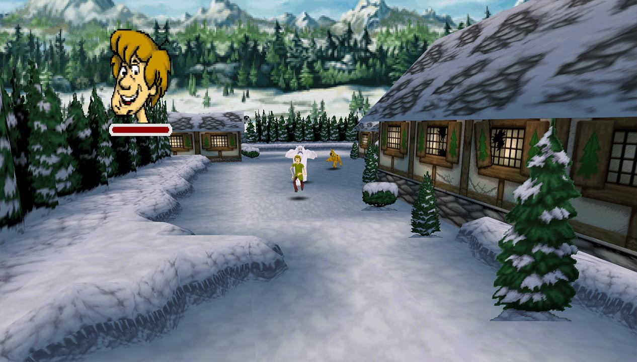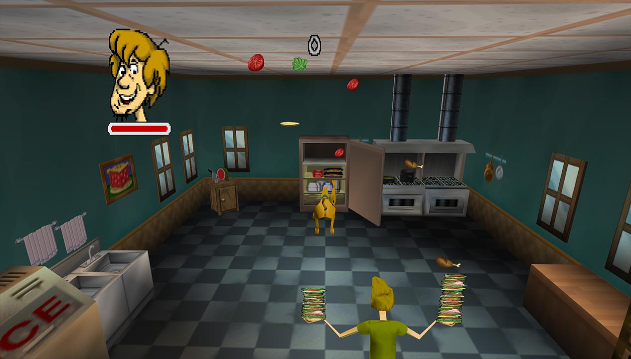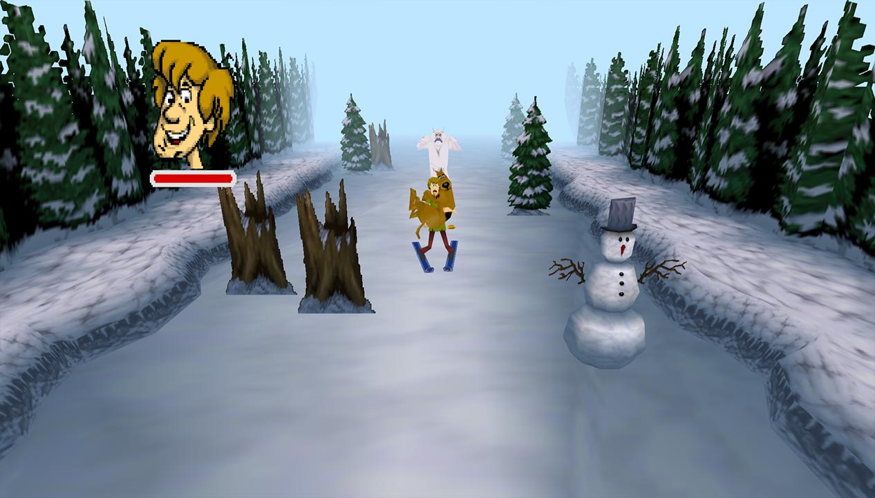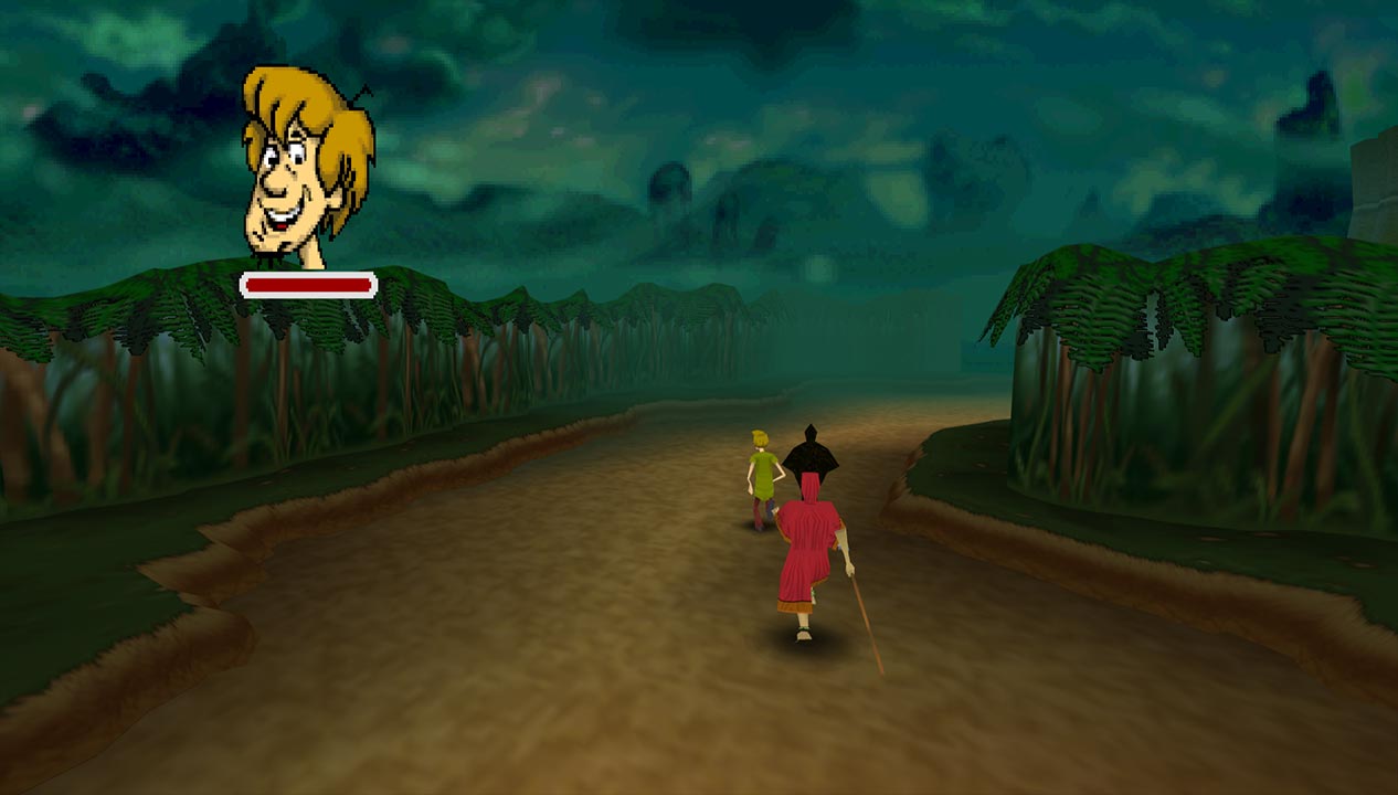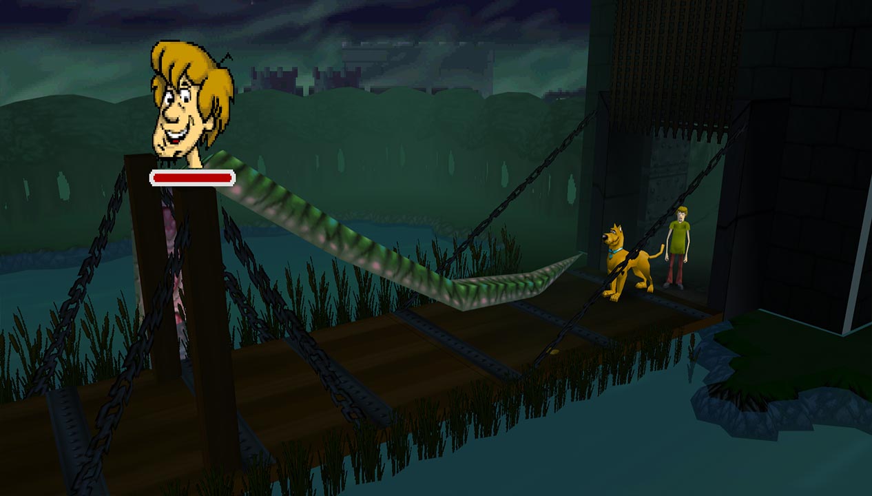 You can also choose between two terrible control schemes. The first is Resident Evil-style tank controls, the other is for more analogue movement. However, the fixed camera angles make it annoying to use. As you move from one screen to another, Shaggy will keep walking based on your starting movement. Let go, and the directions will reset based on where the camera is now. It’s particularly frustrating when you have to run away from enemies, especially as the camera can snap to other positions many times.