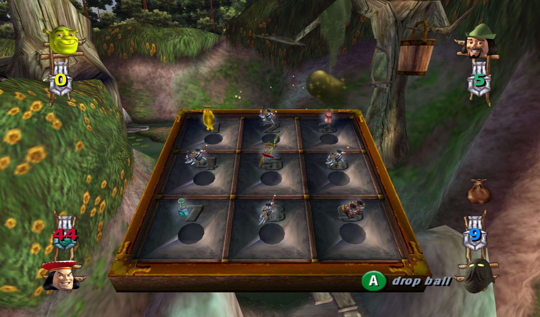 At the start of each game, you choose a region or the board to go though. This will alter the minigames that you’ll trigger, and different players can head to different areas. These are just generic areas like woods, swamp and castle and they feel no different. You drop a ball onto a board instead of rolling a dice and it will land on a number. The game does show you which space you’ll land on for each number, which makes paying any attention to the single board utterly pointless.