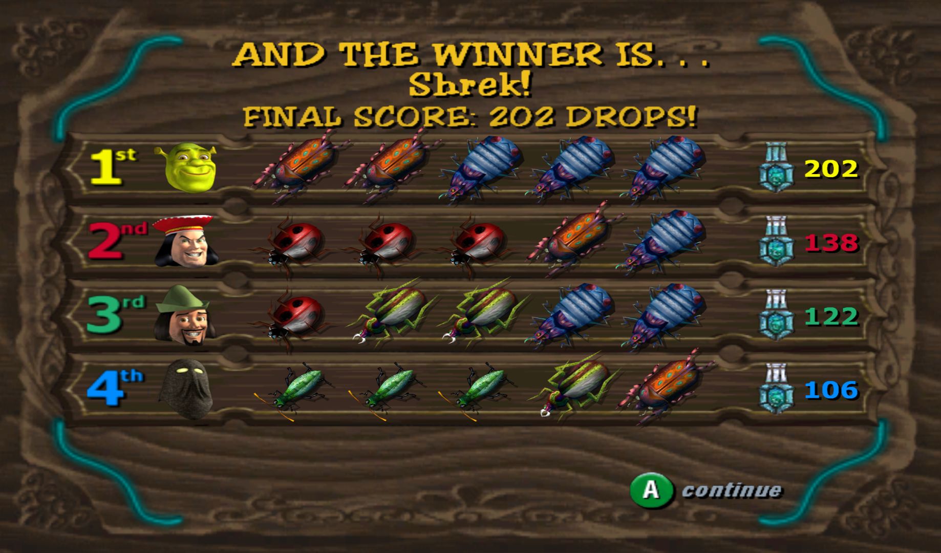 There is one interesting mechanic. At the end of a minigame, each player is given bugs of different colours. You can then swap some bugs with another player, with the winner of the minigame going last. Different bugs are worth different points, and you need to have at least two of that colour to score. Luckily, the CPU is bad at this so you can still win even if you lose a lot of minigames (against other players, they’ll go for the obvious choice). This was a really cheap cash for the Christmas period, except they didn’t bother with the GameCube version until the following May.
