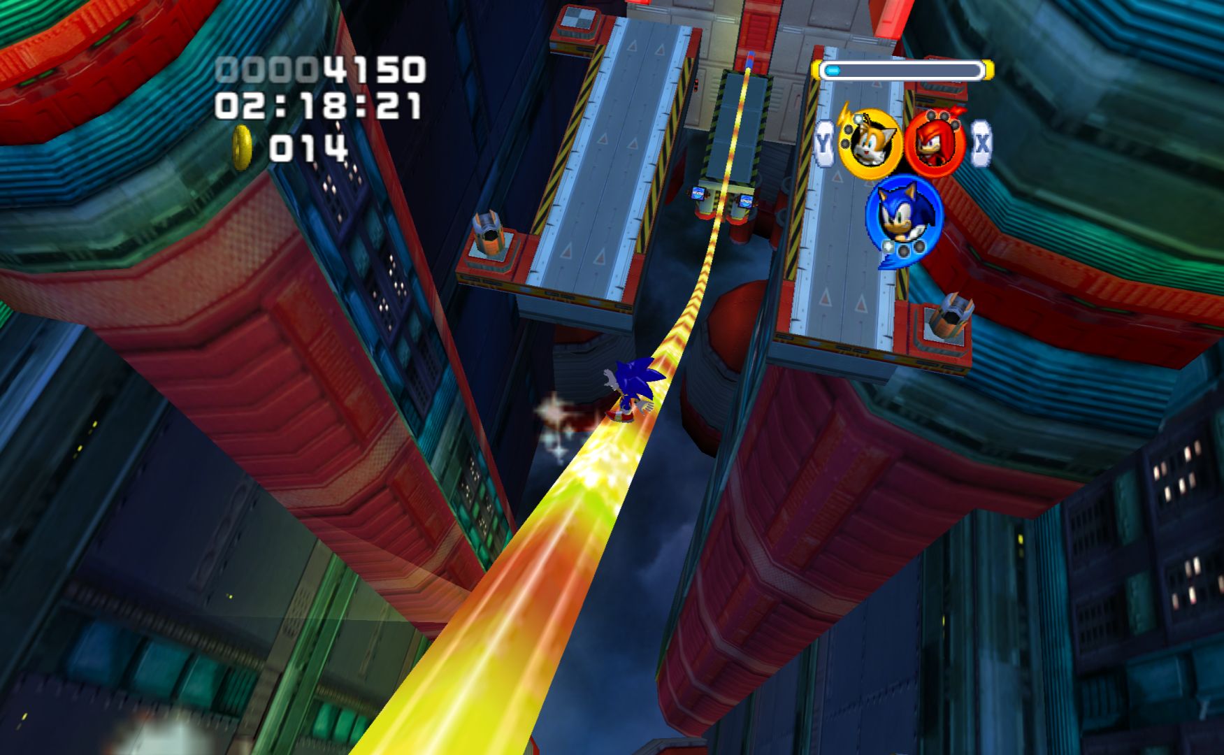 The annoying thing is that Sonic Heroes has a lot of neat ideas. You control three characters at once, and get to choose between four different teams, each of which has their own motivations and part of the story. You have a speed character with a homing attack, a power character that can punch through stuff and a flying character who can carry the others short distances. These can sometimes be used to take alternative routes while sometimes you need the right one to progress. The game will also sometimes automatically change you to a specific type.