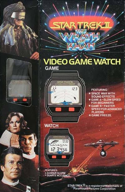Enemies orbit the Enterprise in a circle and you have to aim missiles to shoot them. The game also functions as a digital watch.