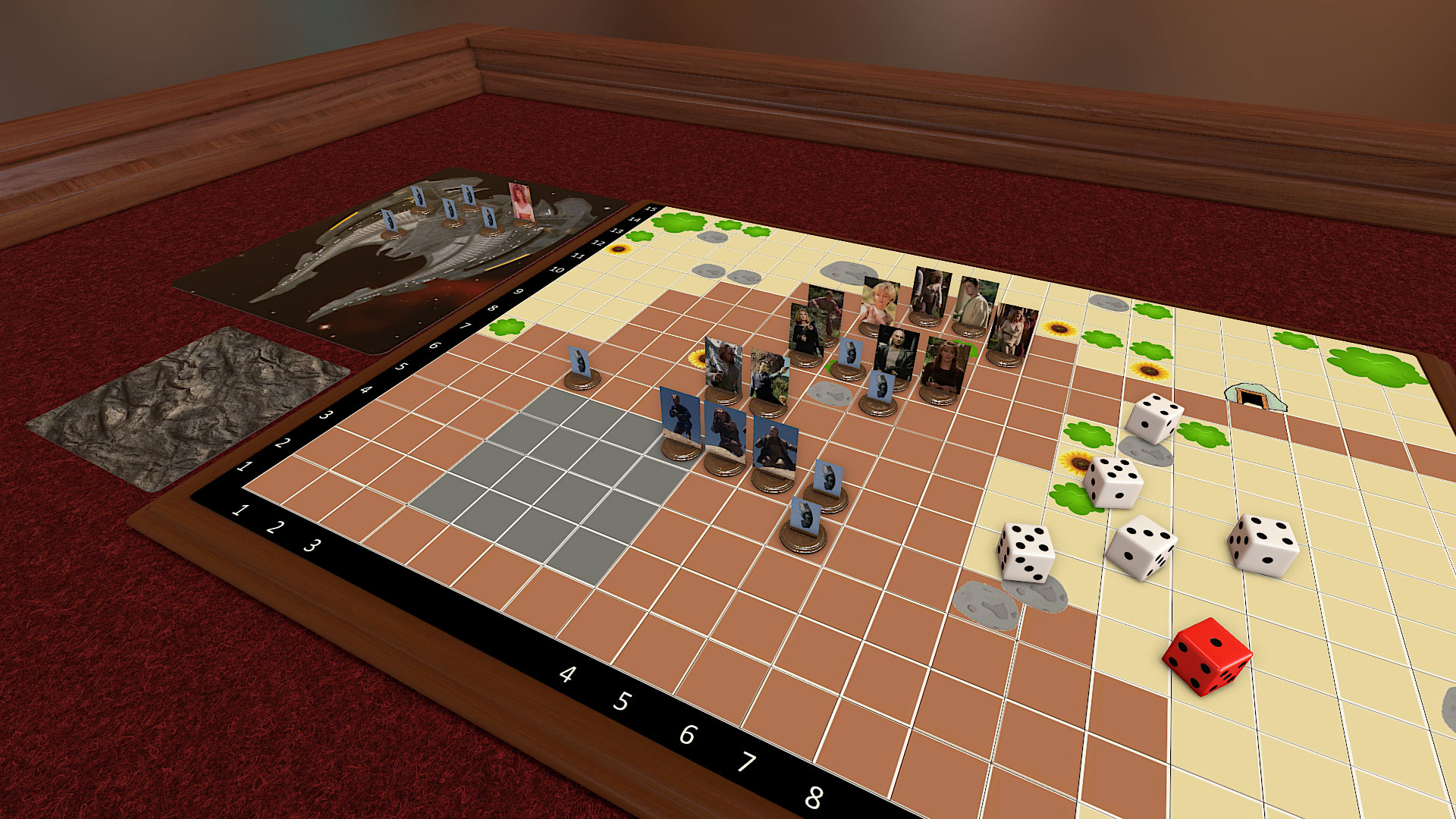 You can only shoot at enemies one or to spaces away. Each crew member rolls a different number of dice (although onl the highest number is counted). The default you need to hit is an 8 for one square away or 10 for two squares away, you can also fire at additional targets, each one adding to the score you need to hit. The character’s phaser skill is added to the roll. One dice is the “Drama” dice. If this lands on a 6, you use both that and the next highest roll.