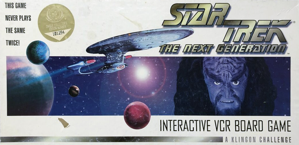 If the game was just rolling moving and doing what it says, it would be boring. But this is a VCR board game, which makes the experience a lot more fun (albeit a bit silly). While playing, you watch the footage and Kavok (played by Robert O’Reilly, known for playing Gowron) will pop up every now and then. He’ll address a player (usually the one currently moving, sometimes based on rank) who has to respond with “Yes Captain Kavok!” and then gets told what to do, which is usually getting trapped in a stasis field (so they can’t move), spinning the Klingon Dagger for a random chance or to EXPERIANCE BIJ!