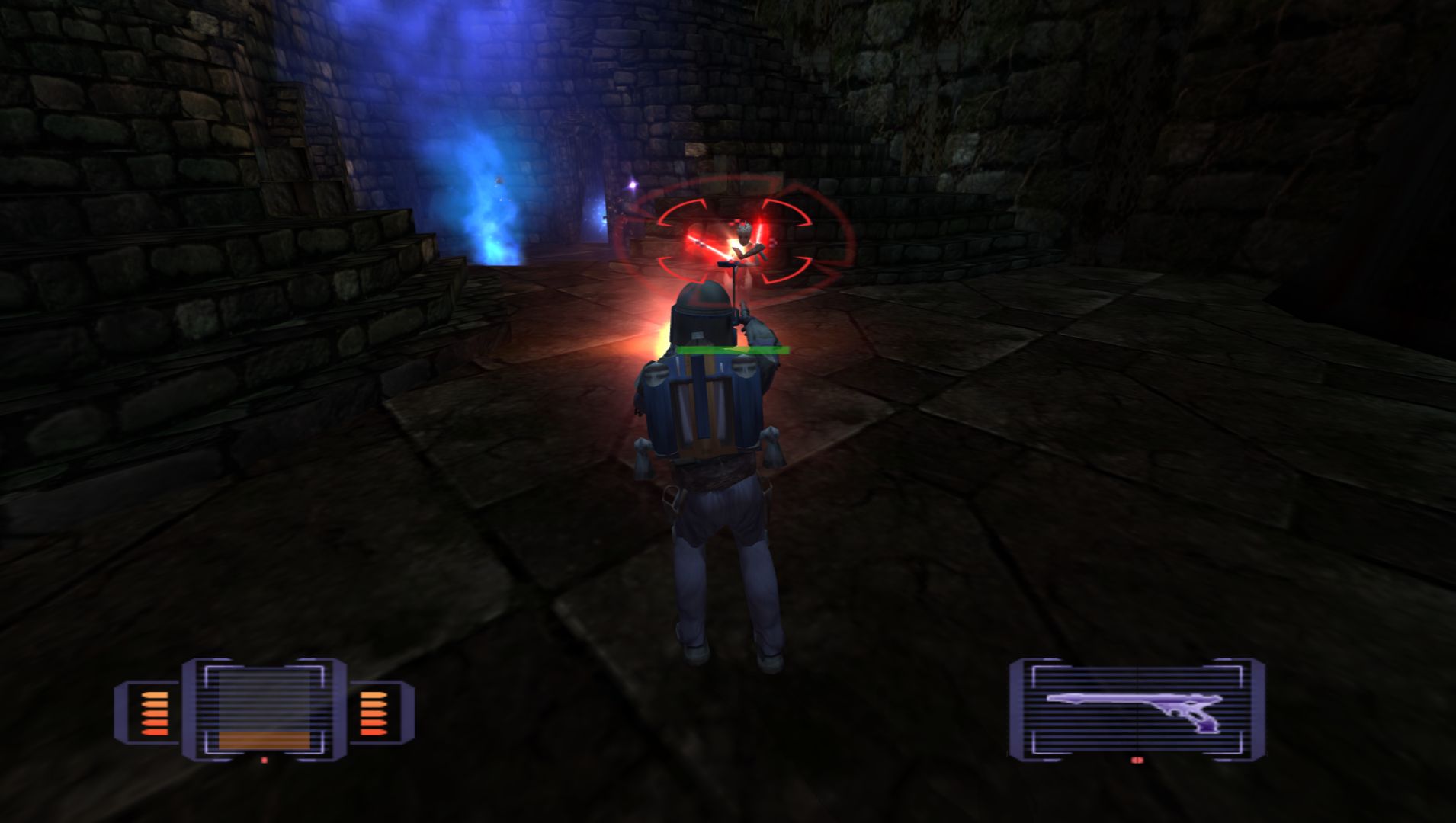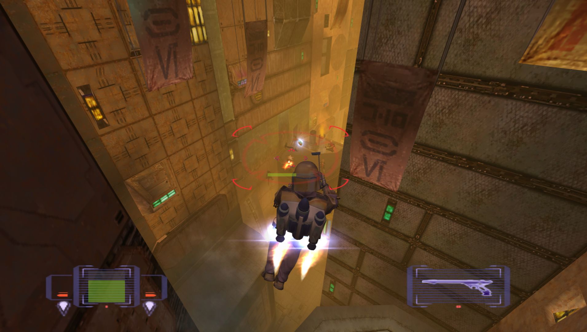 One other issue with the combat is there’s no feedback from enemies when you hit them, and no feedback from Jango when you get hit. Not only does this make combat far less engaging as it doesn’t feel like your hits have any impact, it also means your health can be whittled away without you noticing, especially when dealing with fast-moving creatures in the dark final level.
