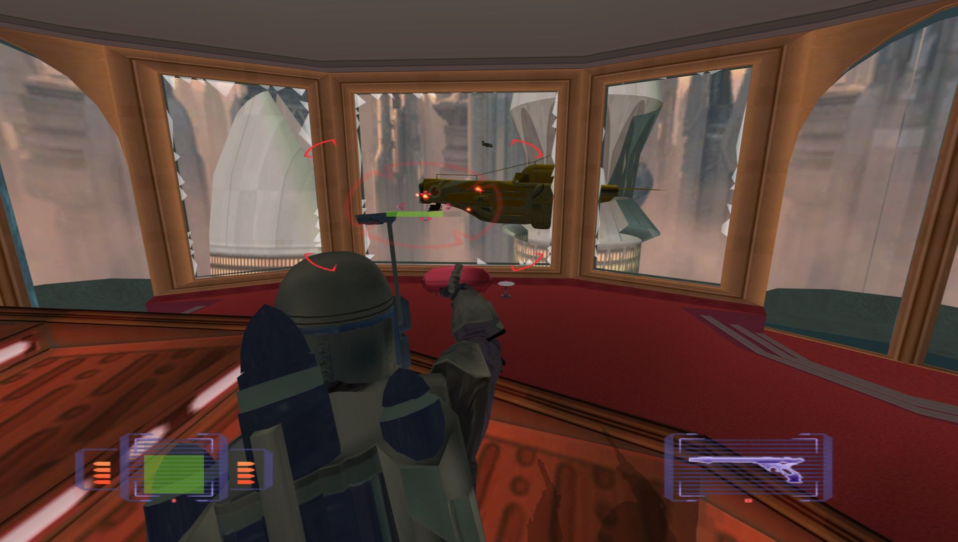 The highlight of Bounty Hunter is that it has a decent story mostly told through some nice looking cutscenes (oddly, what is supposed to be the most emotional cutscene of the game uses in-game graphics). Jango himself seems far more caring than he does in the film, but it works as its own thing.