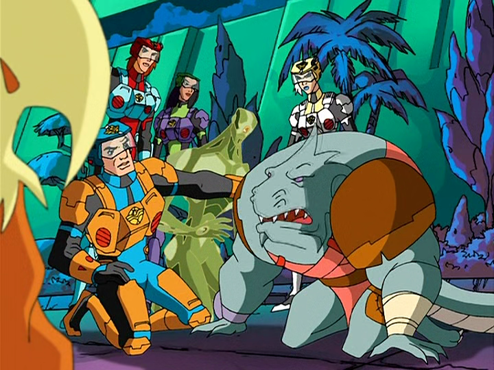 The team discuss wanting to be like the “tough kids” when they were younger, while Ec’co manages to create a cute. He hands it to Mek’rod, telling him he can create enough to cure everyone. Mek’rod seems very guilty, obviously hating what he’s been ordered to do, but everyone is knocked out and ends up in a stone cell. Mek’rod sneaks into the Tlak’kahn headquarters and hears Da’kyll mention that he introduced the sickness, and that these people will make for good cannon fodder if they survive.