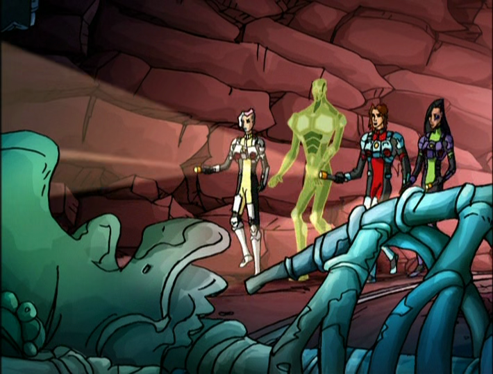 It turns out the strange goo as an alert system for a gang of bounty hunters, clearly designed with action figures in mind. The leader has a dragon-like head, while another is a centaur with a big-like head, a buff version of the Trolls from the 80s, a robot and a floating jellyfish. As Bonner lectures Draga about money and greed, the bounty hunters kidnap them. The leader says he’ll have enough money to buy a planet, but when Bonner mentions the reward needs to be split between them, he attacks the jellyfish to increase his share.