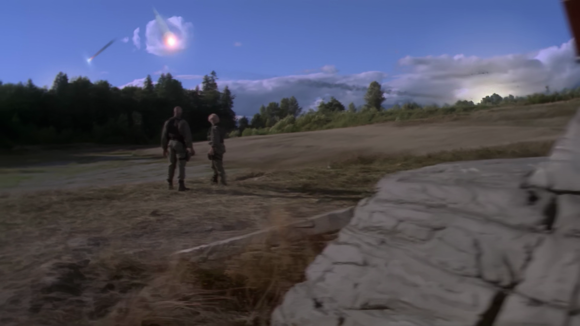 SG-1 are visiting the planet of Endorra and are watching the night sky with a local called Liara to watch a yearly event called a “fire rain” – which is a meteor shower. Carter finds it odd that the event is yearly, and when the meteors come, one skims the atmosphere – a near miss. Both Carter and Jack (who was excited to witness the event) are very concerned.