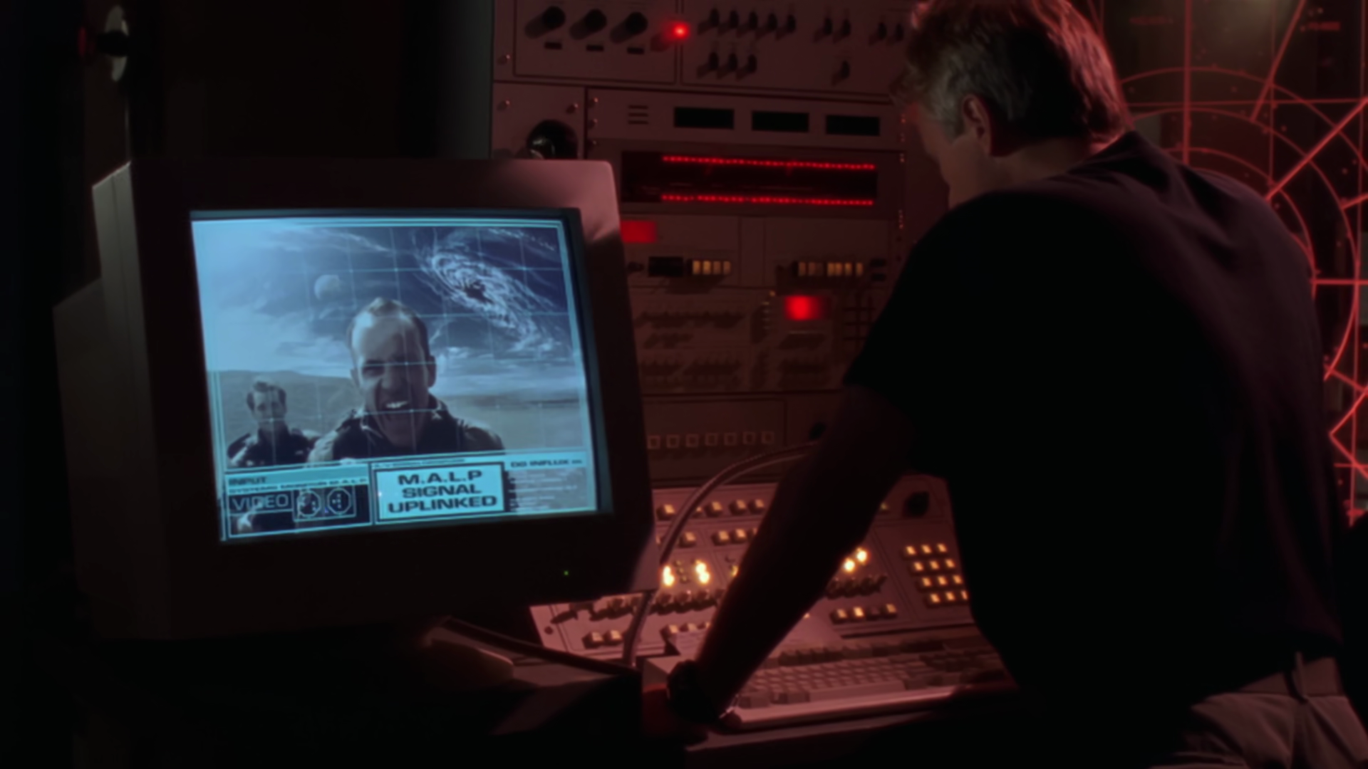 Jack wants to instantly go on a rescue mission, but Hammond wants a MALP sent though first to determine any threat. Jack is still itching to go ASAP and thinks Hammond is being stubborn by not approving a rescue mission. The MALP goes through and the signal is odd, but they manage to boost and speed it up. It shows SG-10 staring towards the MALP, looking terrified but not moving. After moving the camera (which shouldn’t work), they see a black hole – Jack knows that the team is doomed.