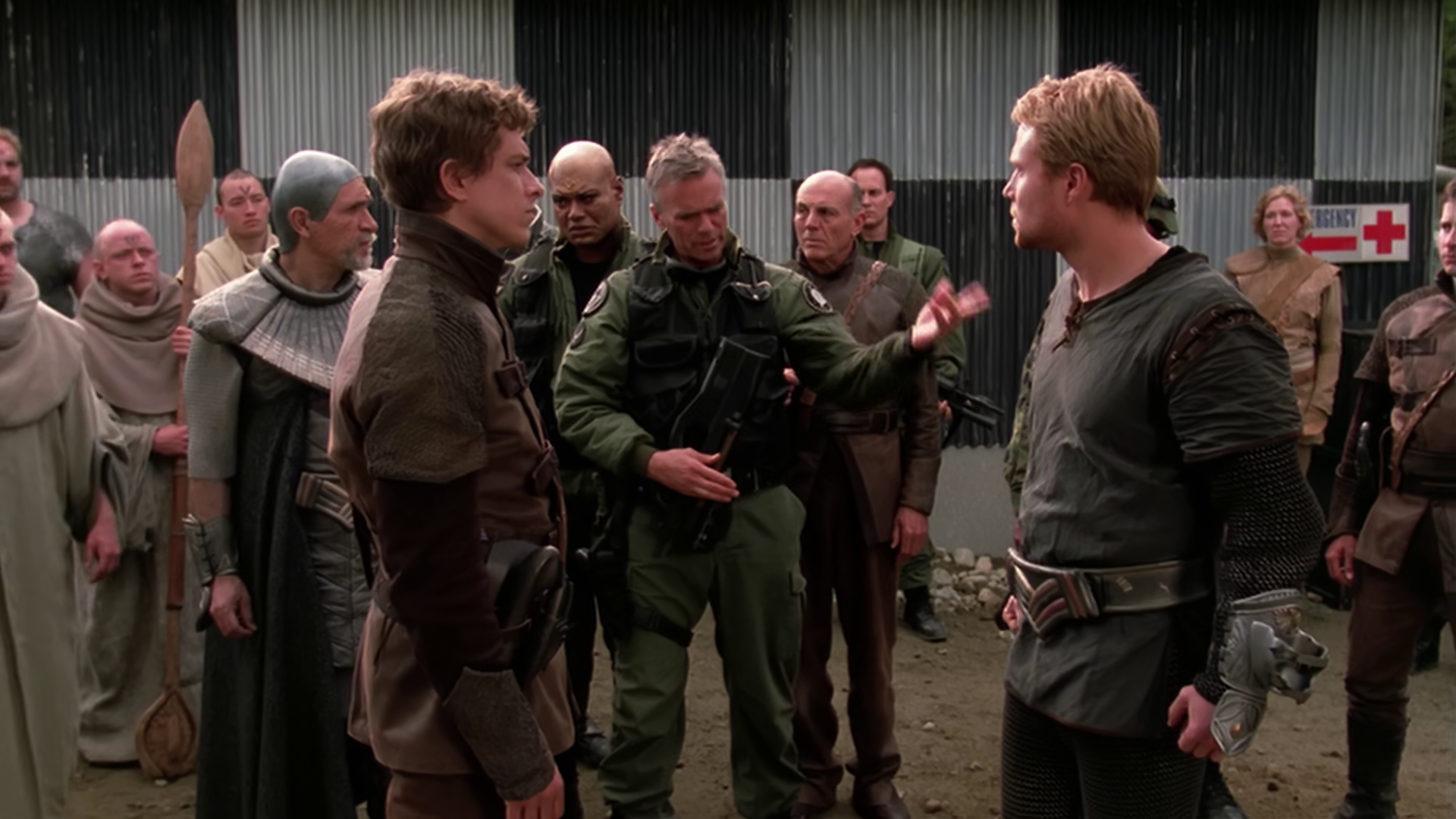 At the funeral, there’s an altercation between a Jaffa called Artok and a Tok’ra called Ocker. Jack breaks it up, with Artok saying the Tok’ra are no different from the Gou’ald. Malek talks to Jack, but it’s clear that Jack is really not a fan of the Tok’ra, especially with his recent experience of being implanted with one.