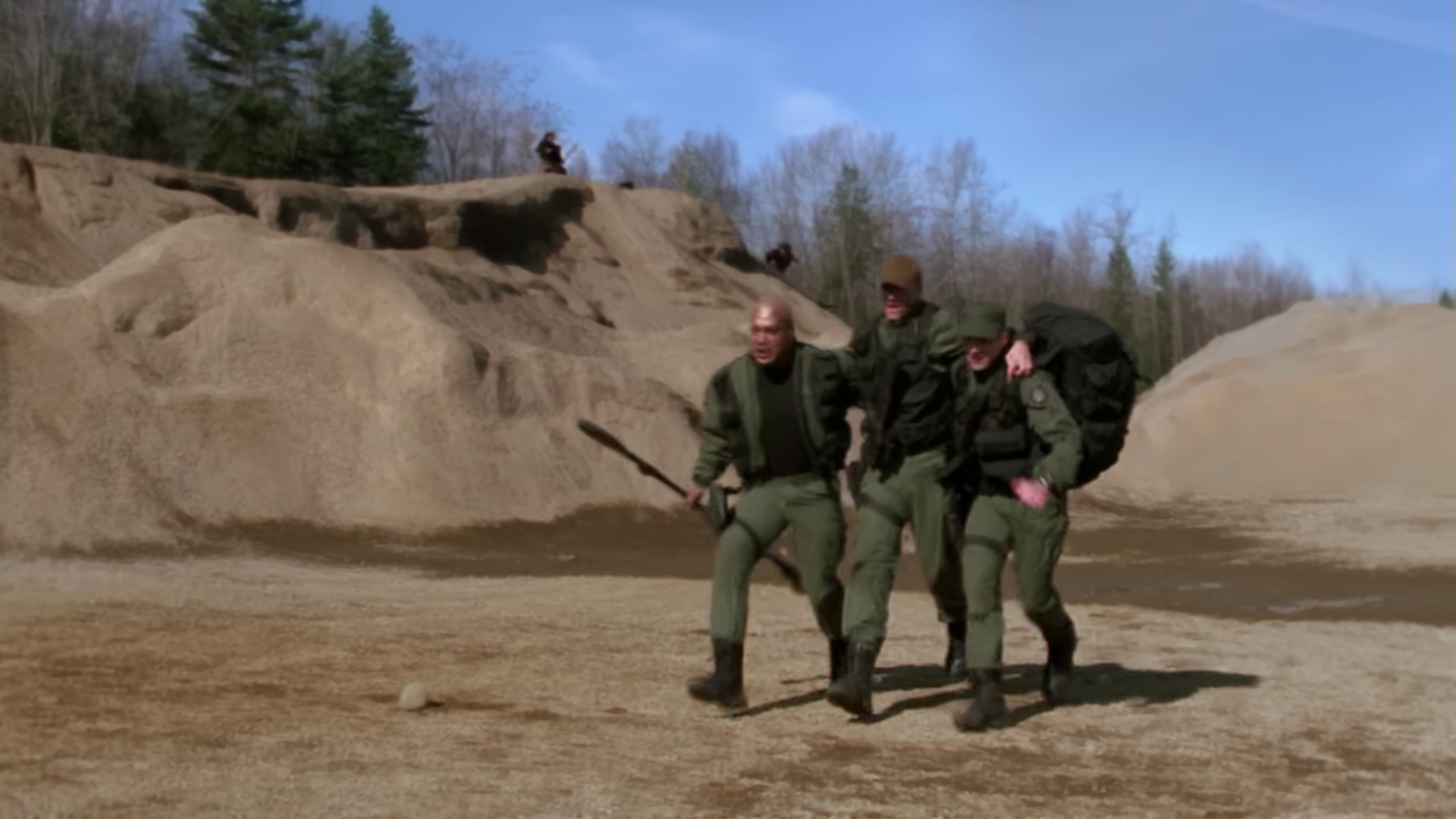 SG-1 are fleeing from natives of a primitive planet, throwing spears at them and using blow pipes. The new member of the team, Hagman, apologises for causing a misunderstanding which riled them all up. They get through the stargate, with Hagman getting darted and knocked unconscious. Hammond says he presumes Hagman will need reassigning (it seems like Jack has already gone through a lot of replacements for Daniel) while also telling Carter that something at Area 51 has been completed.