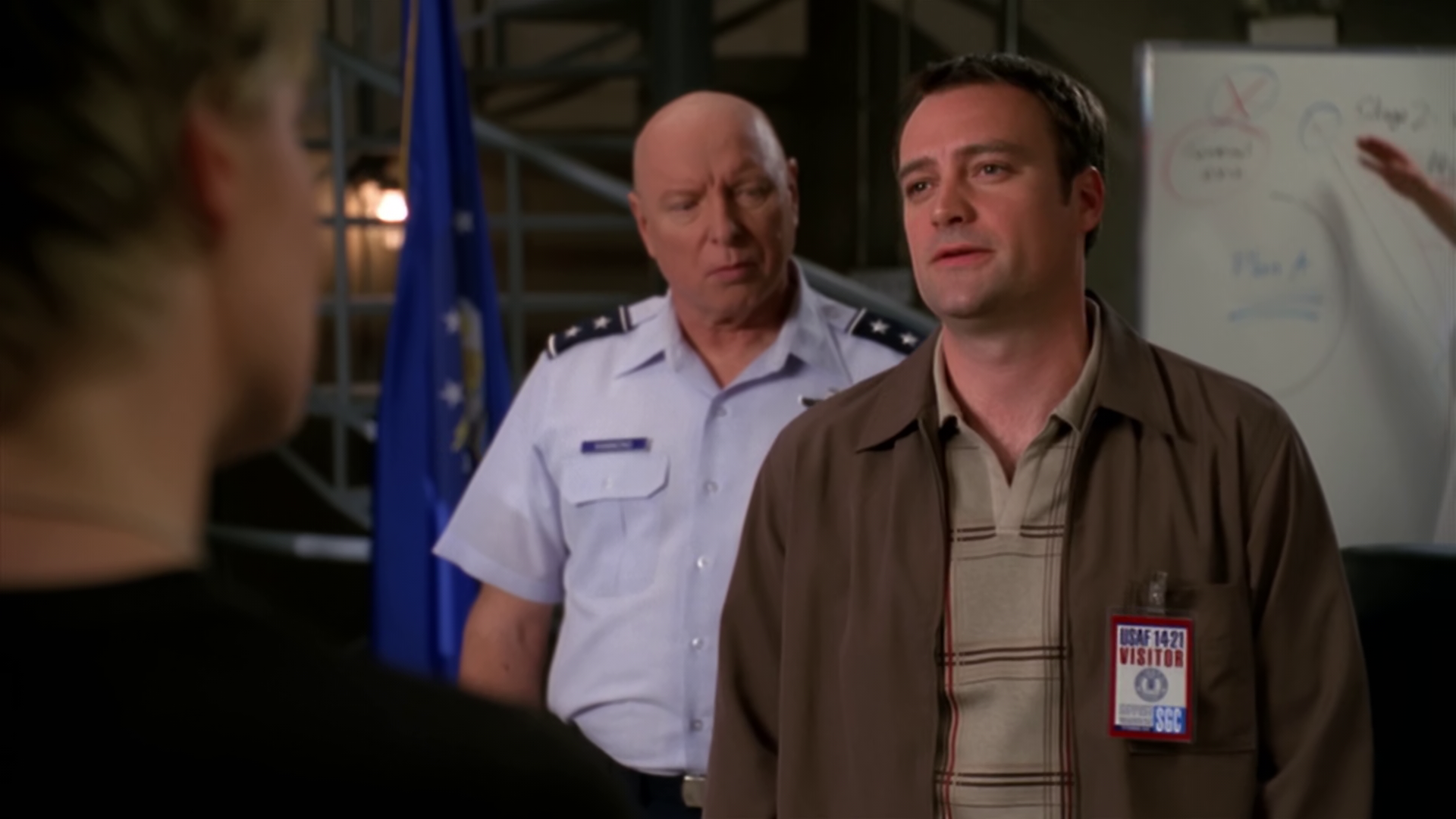 Back at Stargate Command, Colonel Chekov is visiting Hammond, saying that the fourth member of SG-1 should be a Russian. Jack enters and is extremely hostile about this. Once Chekov is dismissed, Jack asks why they need a fourth member, but Hammond says that Daniel’s knowledge, linguistic skills and unique viewpoint (essentially his ethics) are very important to replace. Hammond essentially says that he has until his recent knee injury heals to pick a new permanent member, suggesting that they would have to accept the Russian’s proposal if it takes much longer.