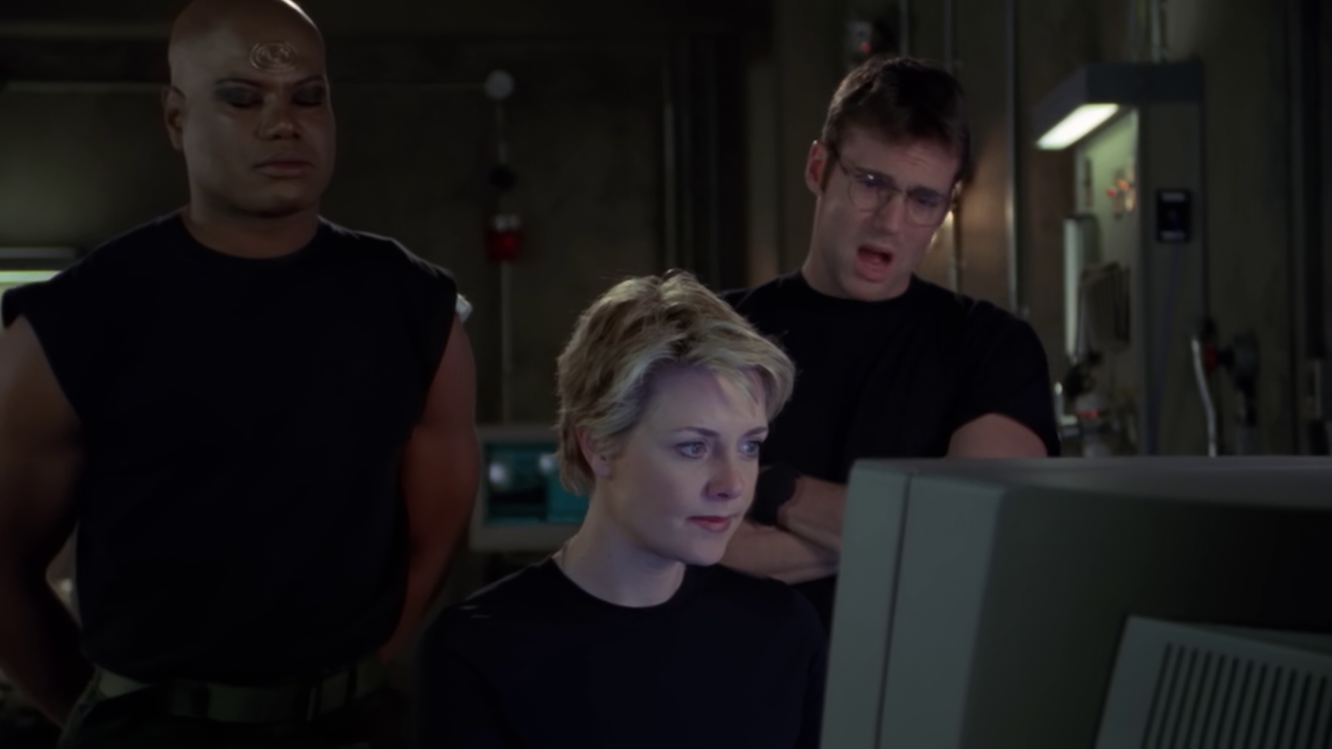 Sam hacks into the base computer and does a search for Tyler. There’s no results, but she does spot that someone else has done a search for him, someone off base that has been looking into all of SG-1 as well. They do consider the possibility that something is wrong with them.