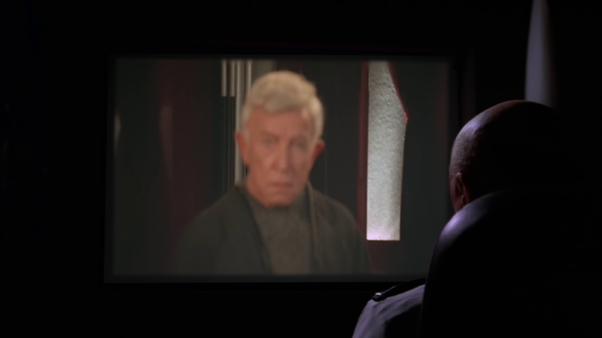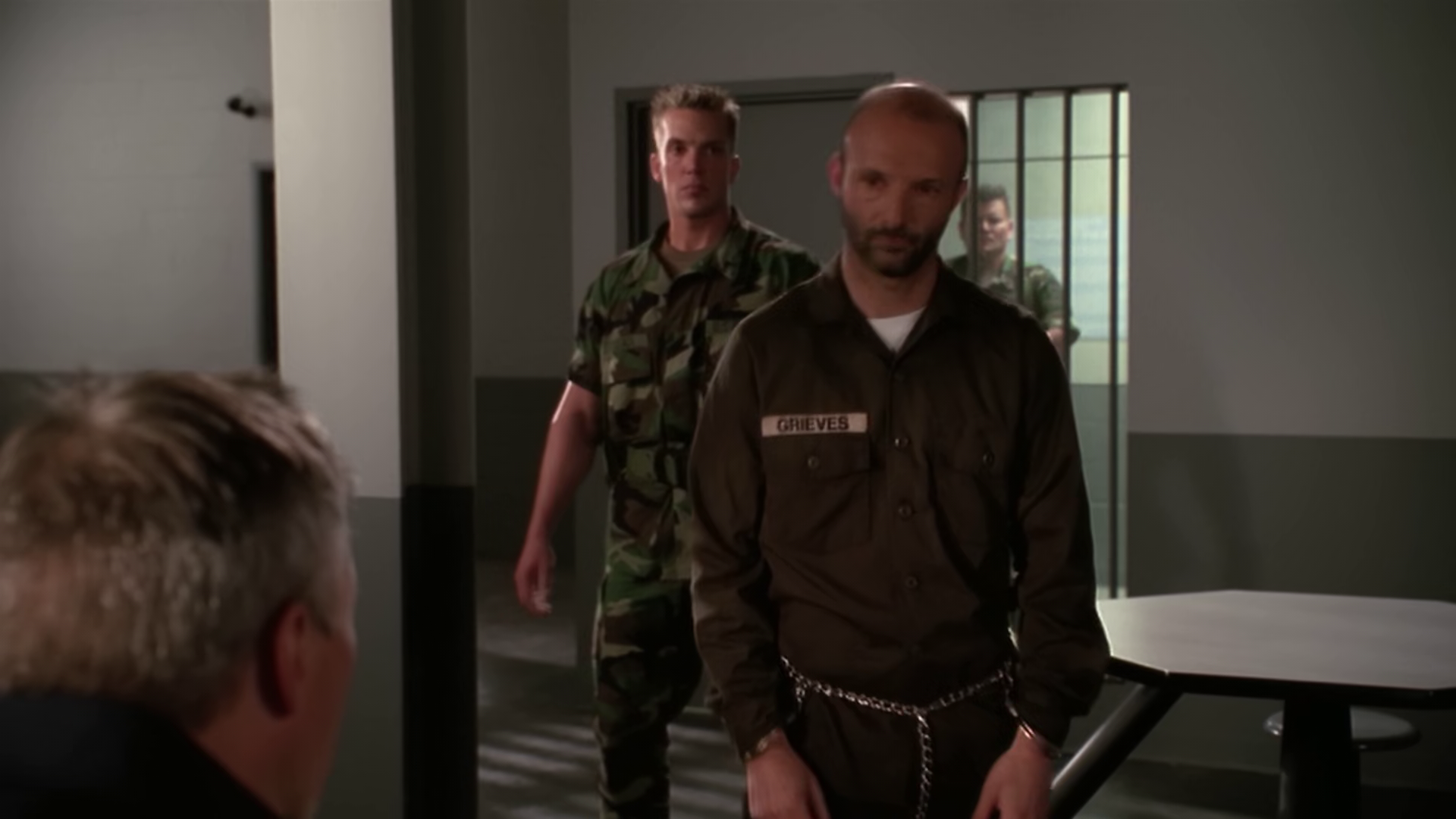 Hammond shows a video of the NID agent Grieves talking to the head of the people there. The report says they were never granted access to this device, called The Sentinel, but as it’s clearly not working, they suspect Grieves still messed with the device. Teal’c thinks this first group of Jaffa is a test and that a mothership will likely be on its way. Before they go, Carter suggests talking to Grieves as knowing what they did to it will be helpful for fixing it.