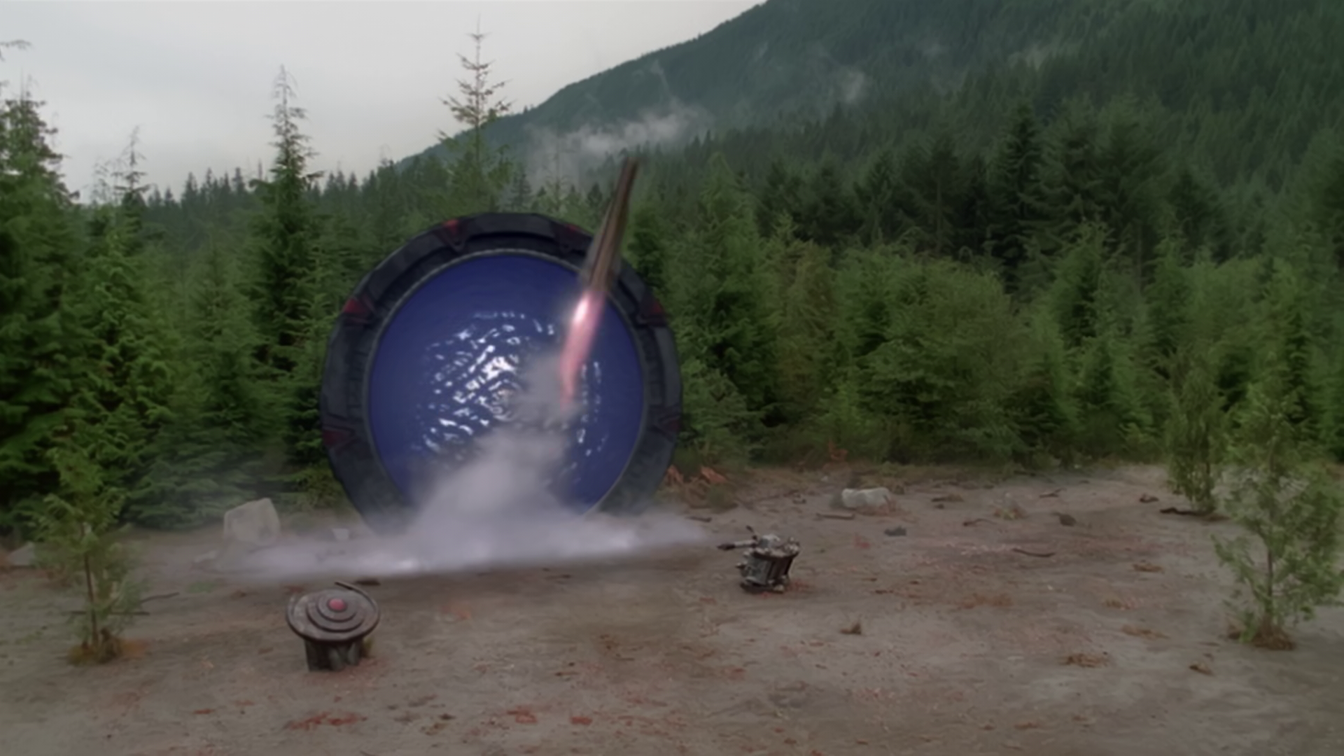 Using a new UAV, SGC locate two Jaffa turrets guarding the stargate. They shoot two missiles through the Stargate as SG-1, SG-3 and the two NID operatives (Kershaw joining Grieves) head through the Stargate afterwards. Grieves is annoyed that they don’t have guns, and Jack tells them if they do anything except the mission, he’ll shoot them himself.