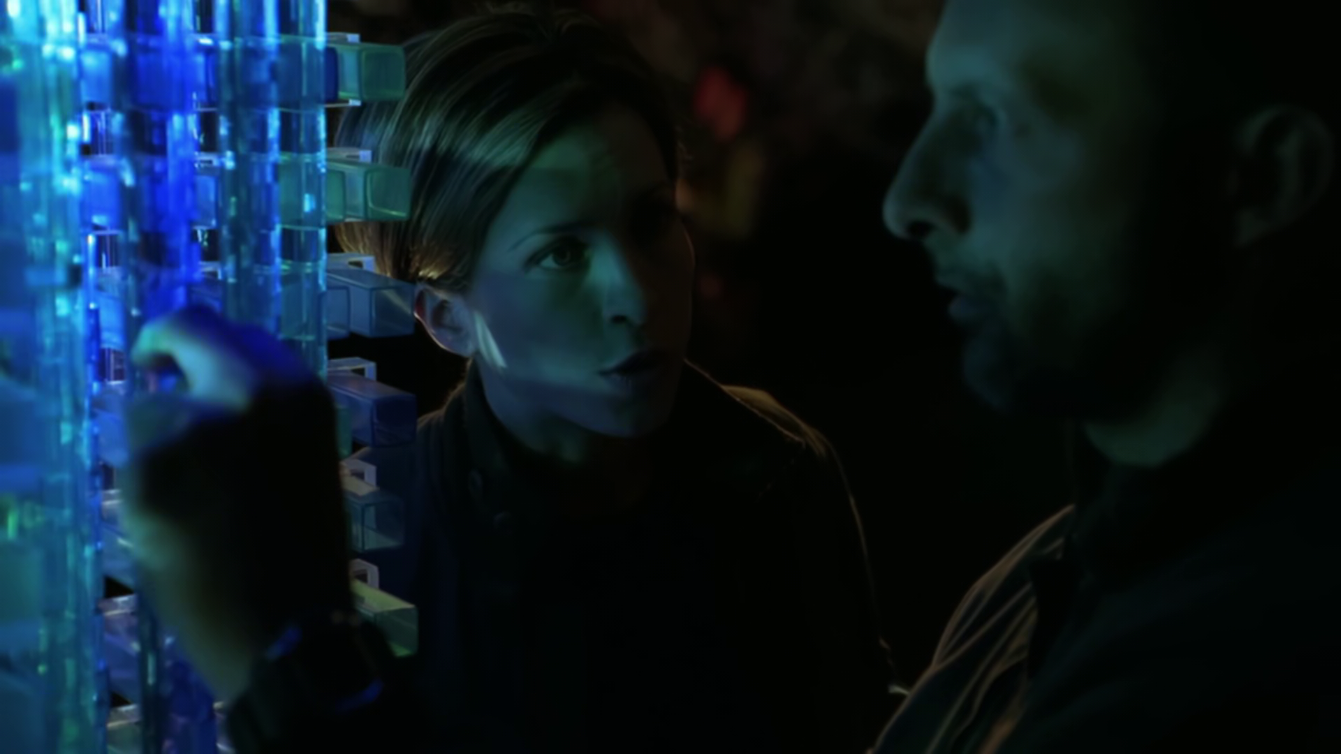 As Teal’c, Carter, Daniel and the NID guys reach the Sentinel, Daniel assists them with the forcefield while Carter and Teal’c stand guard. We cut to the plant’s leader, Marul, who is talking to a Jaffa, saying that their people refuse to serve anyone, and they’re confident that the Sentinel will kick in and save them all. When he leaves, Jack and Grogan talk to him. He has no interest in evacuating, and still believes the Sentinel. Jack tells him that Grieves ignored his requests to not interfere and managed to get to it and mess with it.