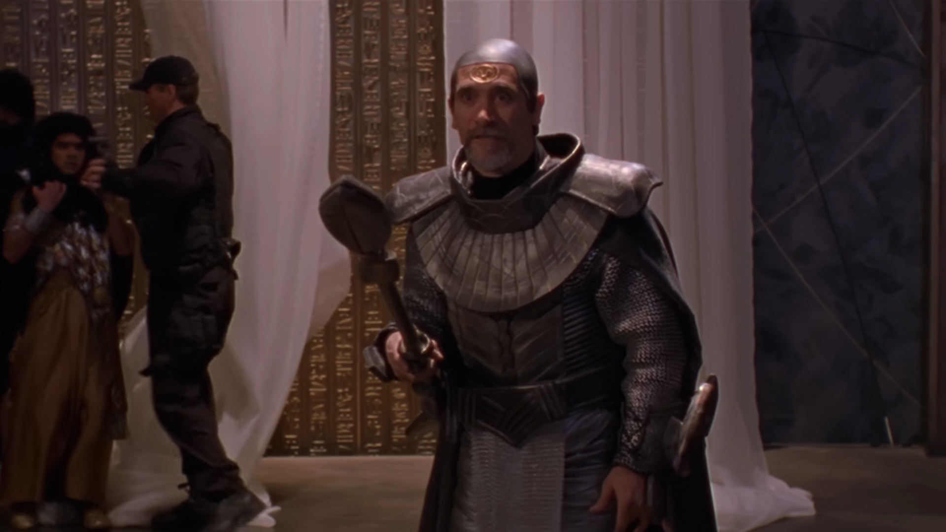 As the ship they’re on is going to blow up, thanks to C4 being enhanced by the Stargate material, so they need to get to Apophis’ ship. With the help of Bra’tac and a few Jaffa guards, they kidnap the resurrected Klotel and move it closer to the other ship. Daniel gets hit and is fatally wounded and… nobody seems to care all that much. They don’t even help him into the resurrection machine sitting next to them. Throughout the rest of the episode, the rest of SG-1 don’t mention him again. I think they just needed him out of the way for later.