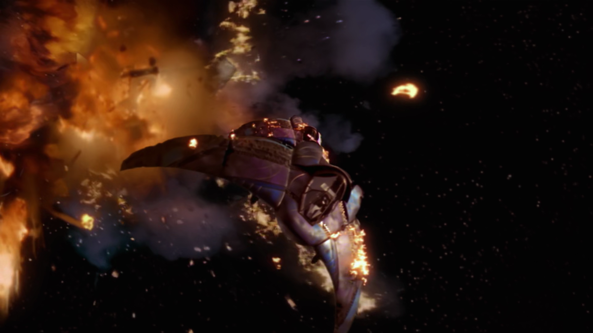 Jack, Sam, Teal’c and Bra’tec find where the shield generator is. Bra’tec describes a long and dangerous journey through the ship as Jack chucks some grenades down a large shaft, disabling the shields. Bra’tec says the only thing left to do is wait to die, to which Jack refuses and suggests escaping in death gliders; they almost get out of range as the ship explodes, but the gliders are disabled.