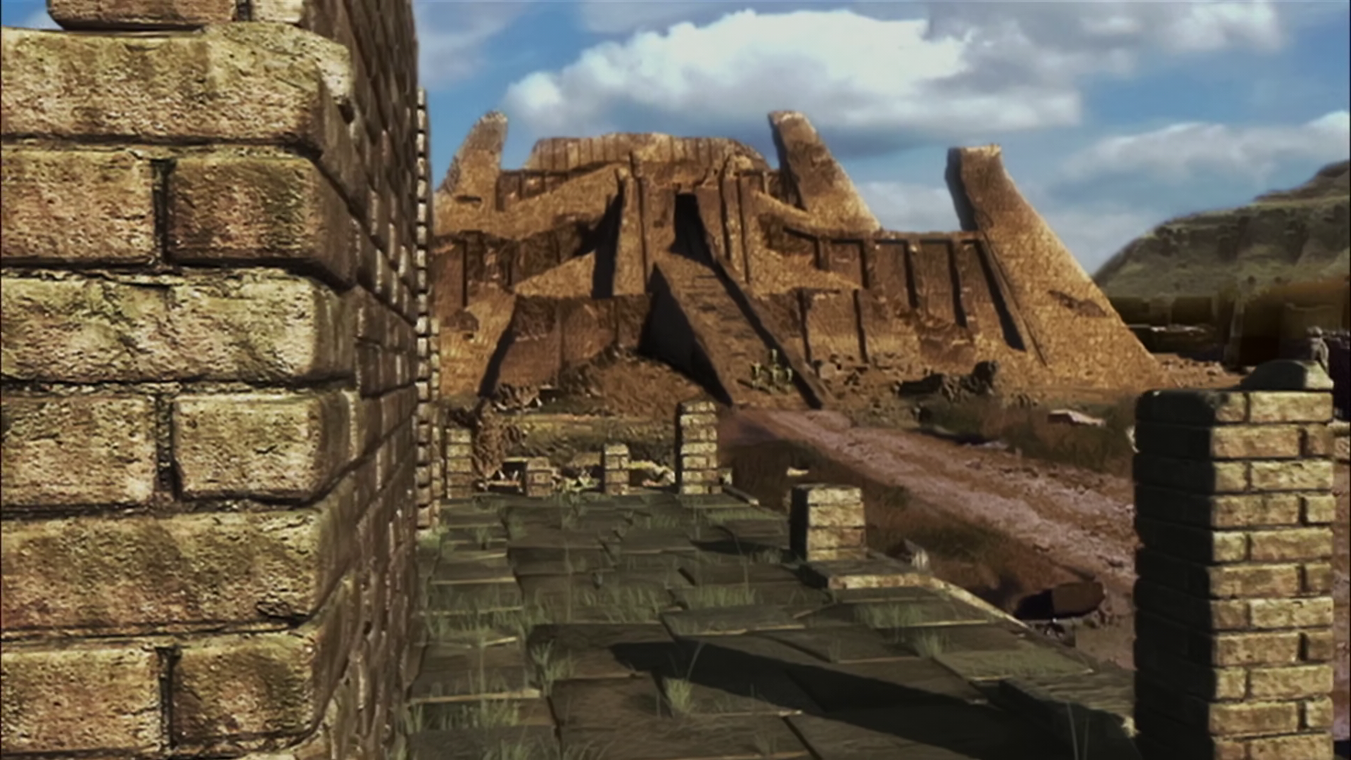 SG-1 are investigating a temple – a pyramid-like Babylonian building called a ziggurat. There’s a colossal door which is essentially a puzzle. Daniel says he’ll need more notes to compare before he can get them all in, and says it’s likely they’re the first ones here in 3,000 years. Carter says she’s not so sure, and points out some litter – a cigarette box. A Russian cigarette box.