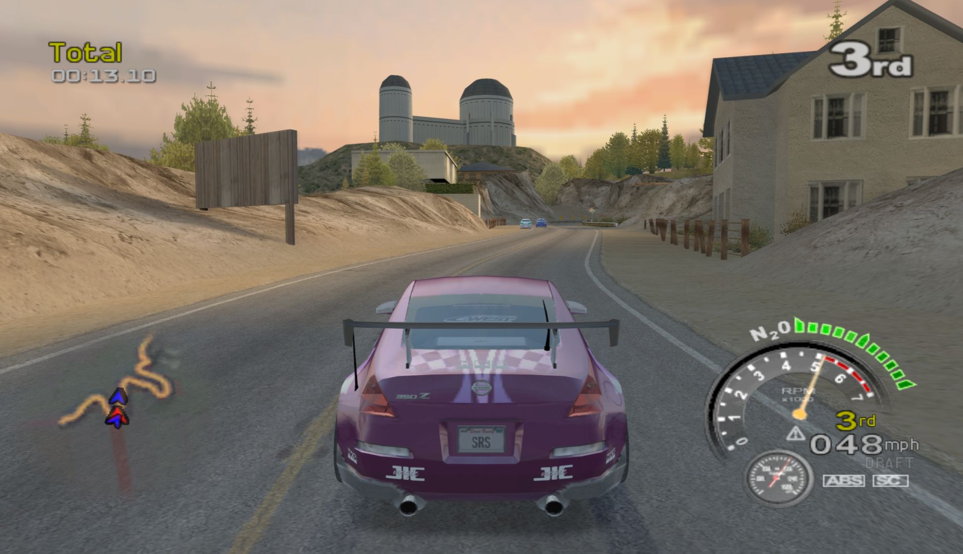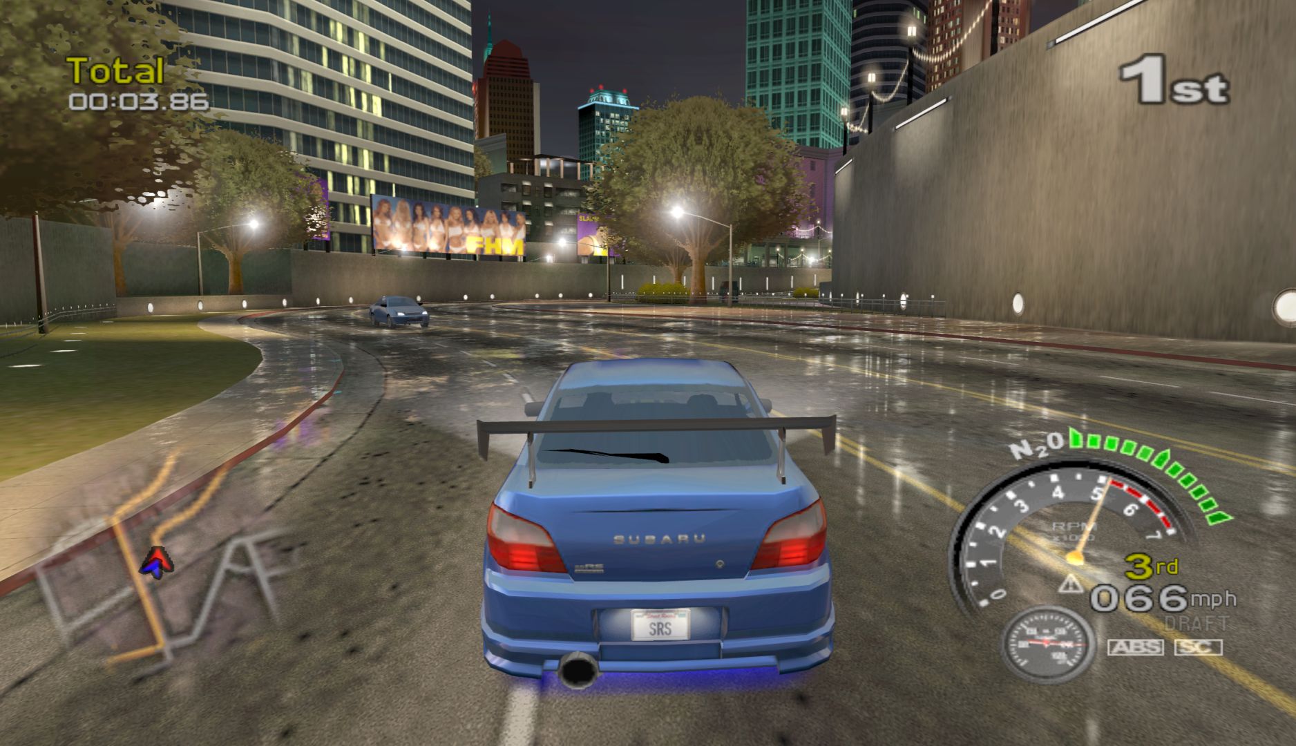 A quick and cheap copy of Need for Speed Underground. Street Racing Syndicate is a game all about tuning cars and racing them on a city at night just after it has been raining, although the effect is just a blurry mess here. For a Eutechnyx game, the racing is surprisingly functional, although still devoid of any excitement and still feels slow in the fastest cars. While it is clearly inspired for NfS Underground, there are a few differences.