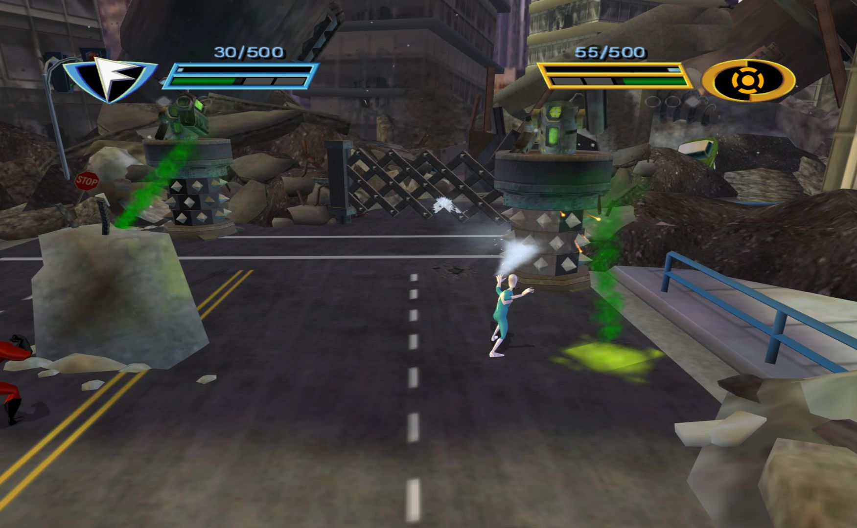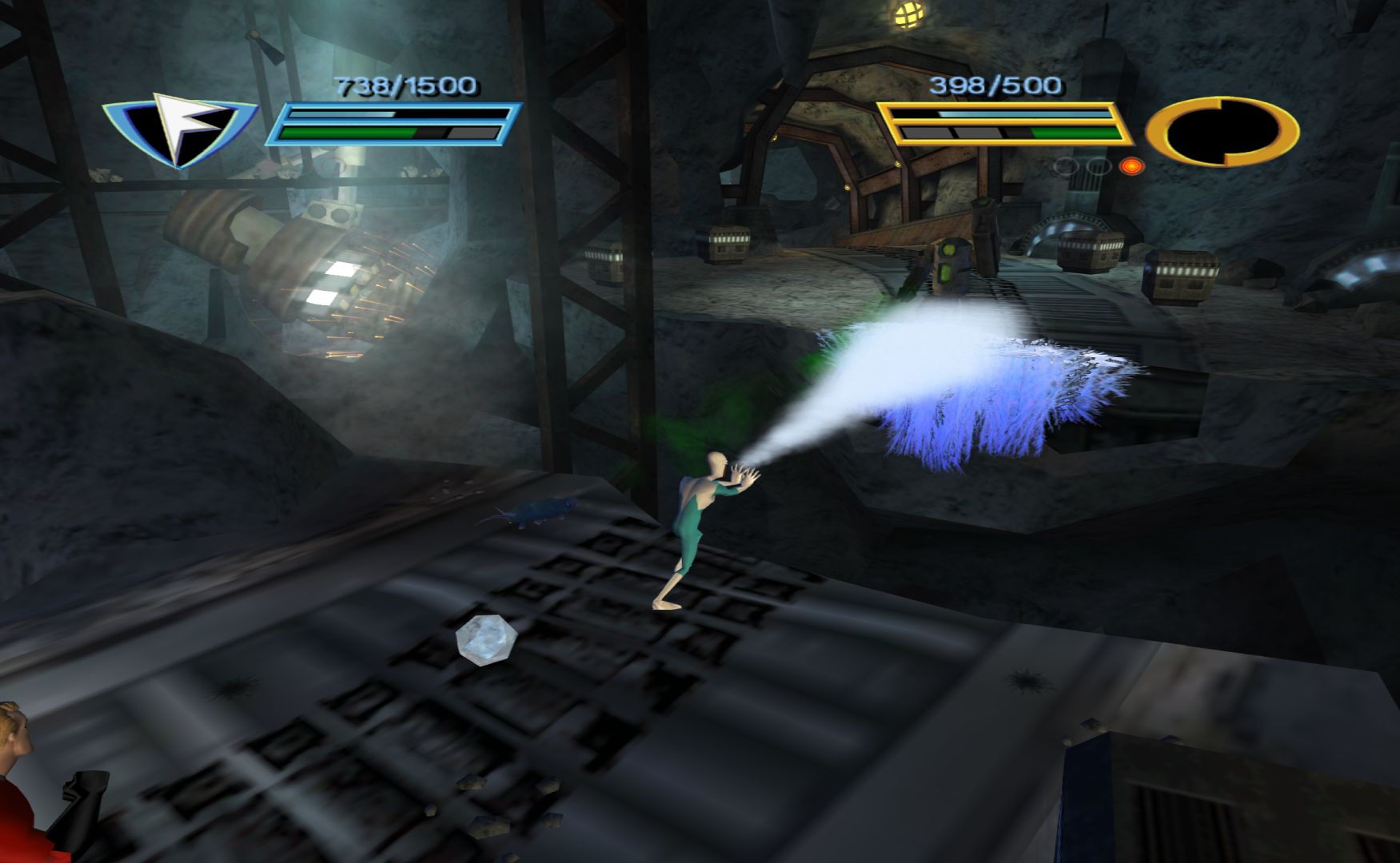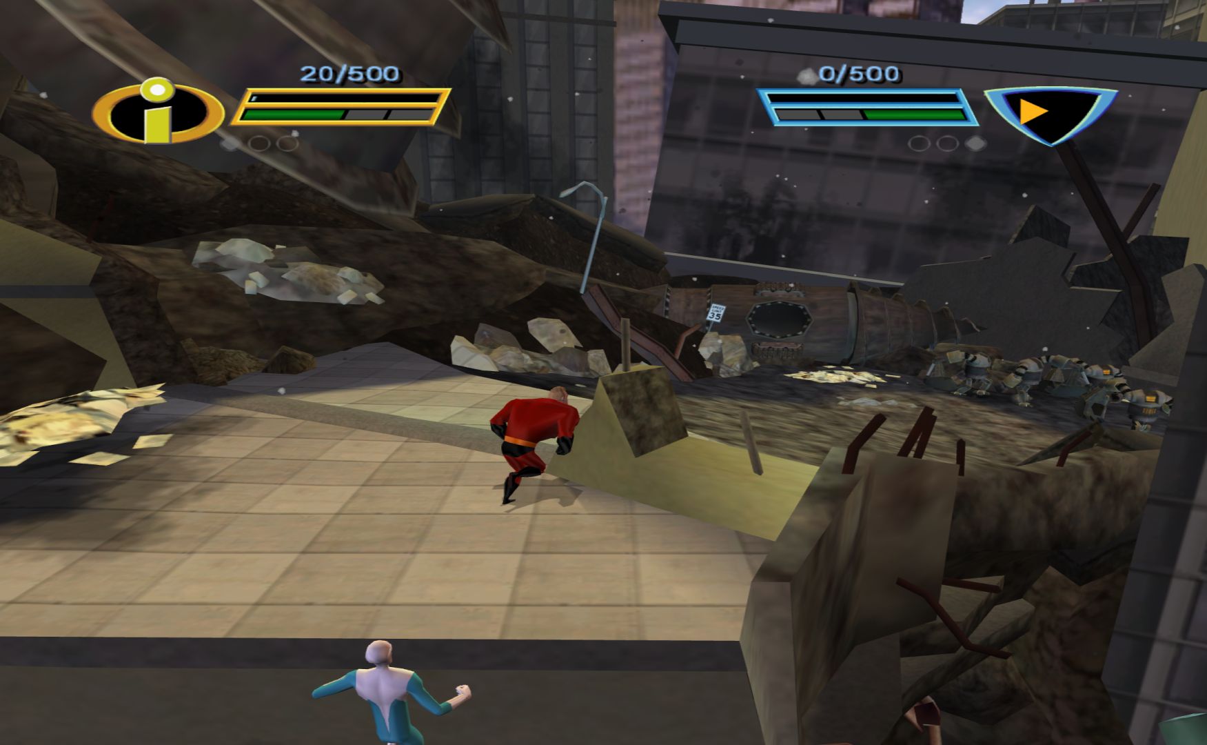 The first Incredibles game had quite a few problems, it was a dull beat ’em up. However, it showed some promise when it came to levels featuring Dash and Violet. This game is a sequel to the film, so they had a lot more freedom in creating levels for each of the family members. So I was quite disappointed when Mr Incredible sends all of his family away at the start of the game, with Mr Incredible and Frozone opting to save the world on their own.