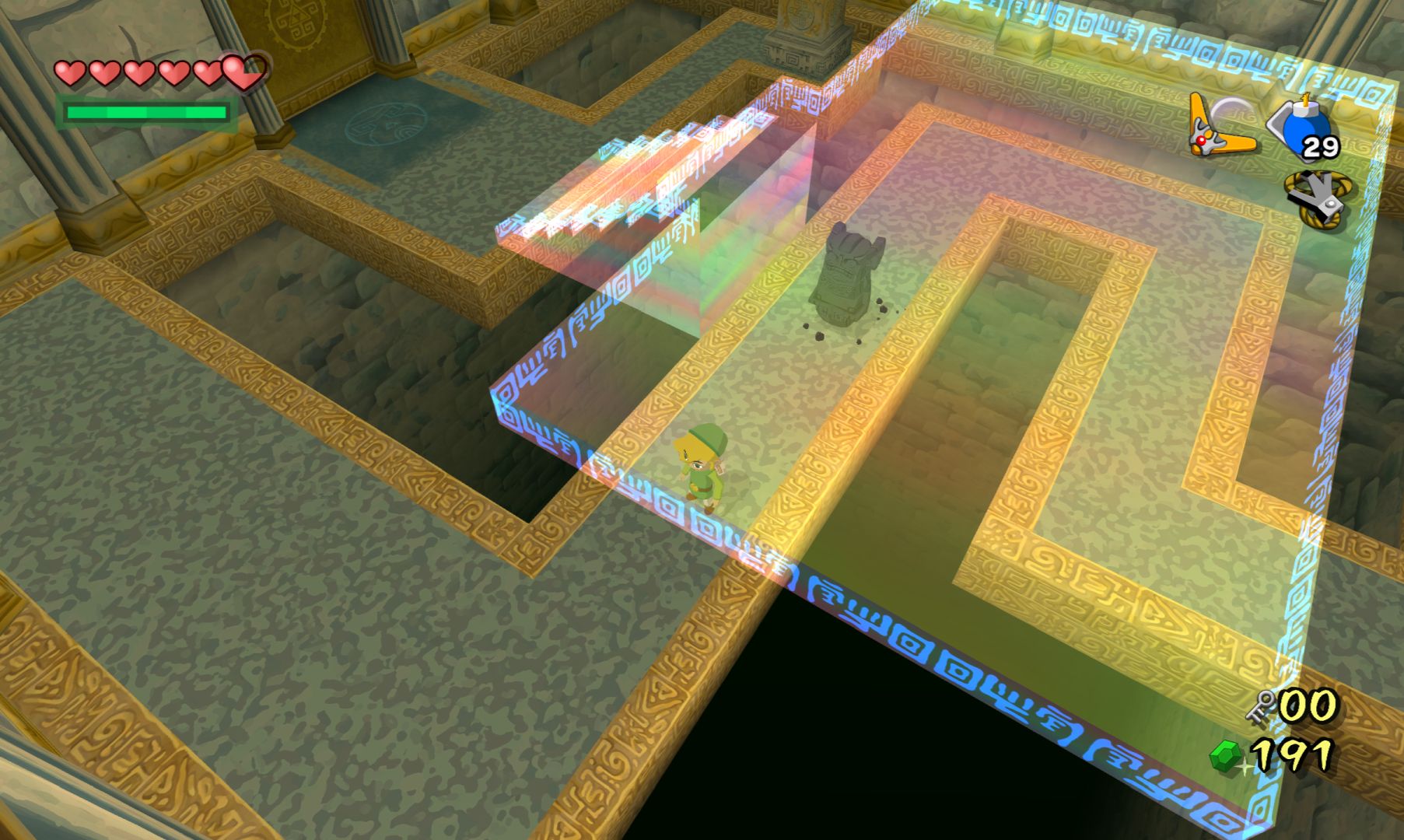 There are some downsides to this, though. As so much focus is on the ocean, Nintendo ran out of time for the dungeons, with only 5 proper dungeons in the game. I really enjoy all of these, with many of them circling you back round to a central point in a satisfying way – so you get the key item and the next door will take you closer to where you need to be without the need to backtrack. This is then countered by the Command Melody, a tune that lets you control certain statues and companions, which is a faff to play every time you need it.