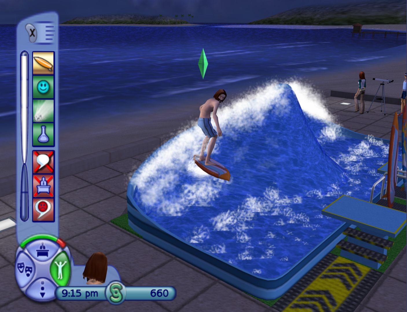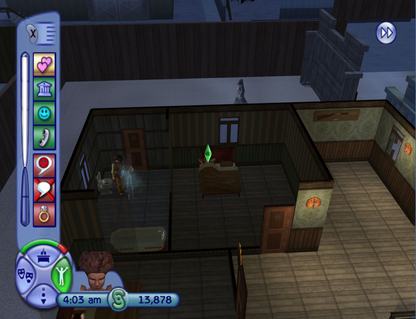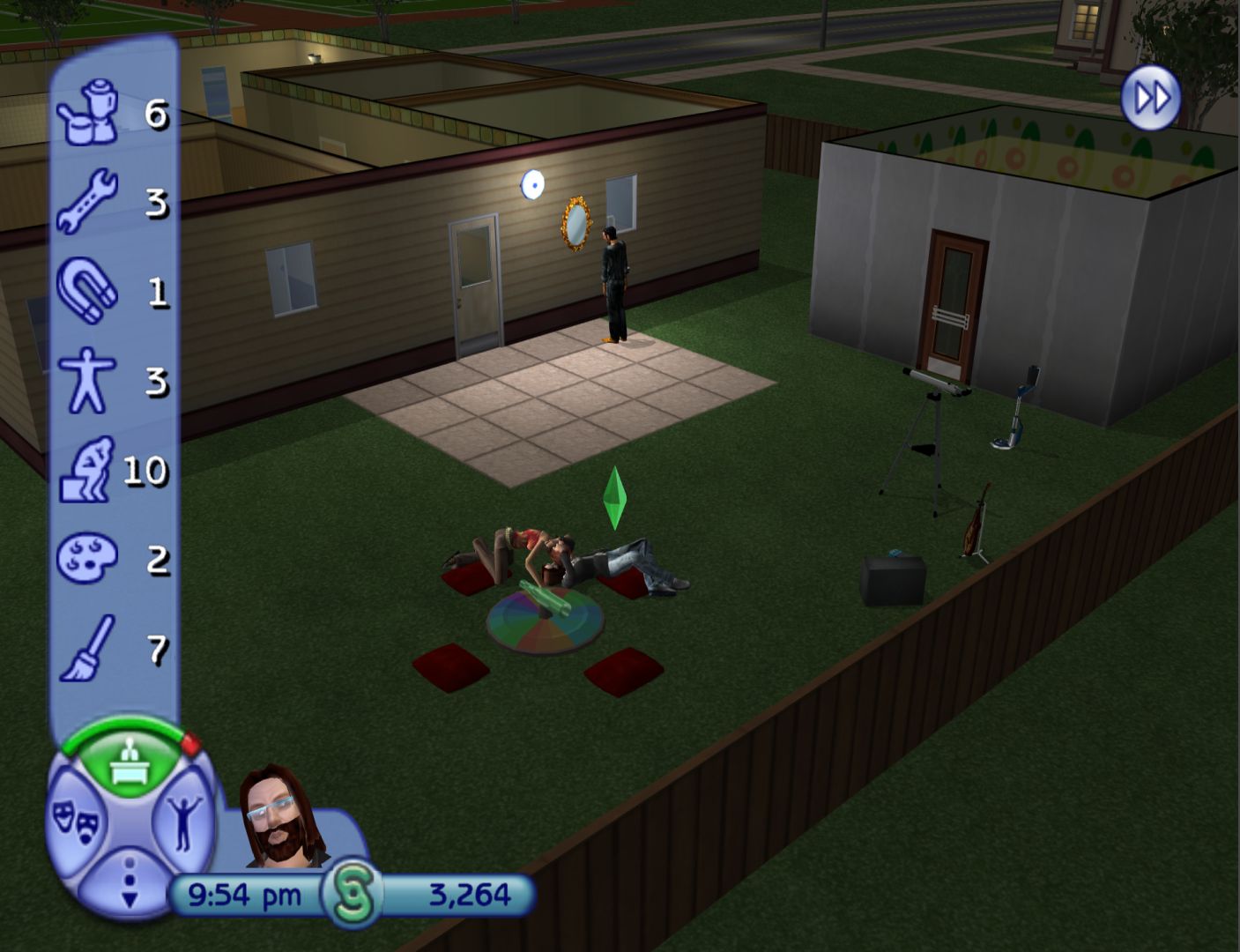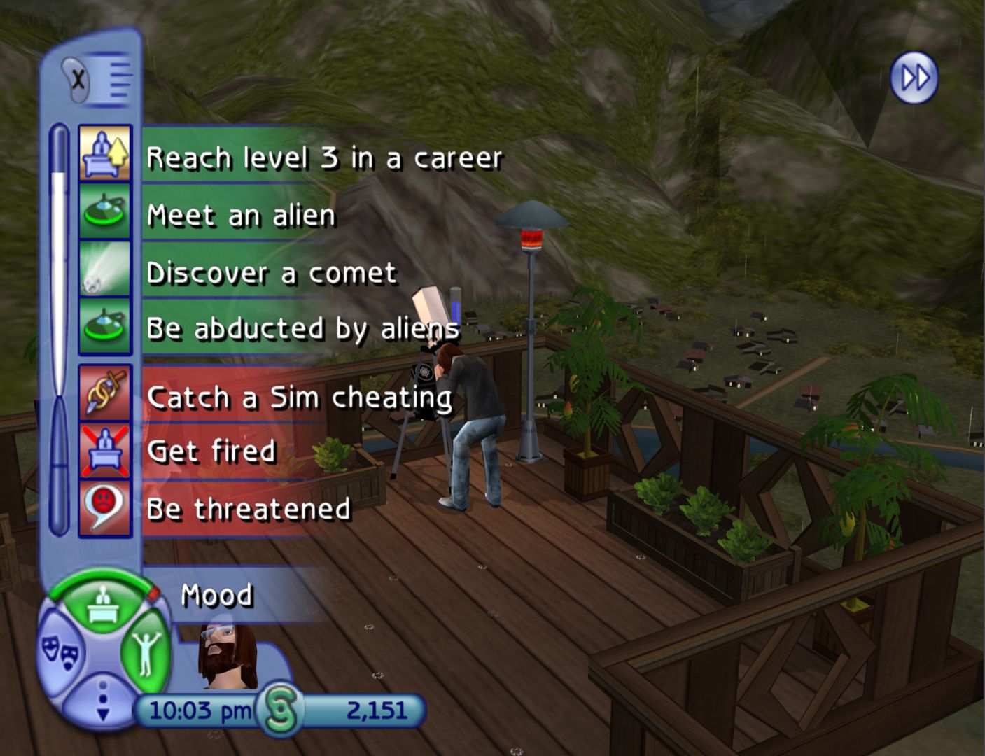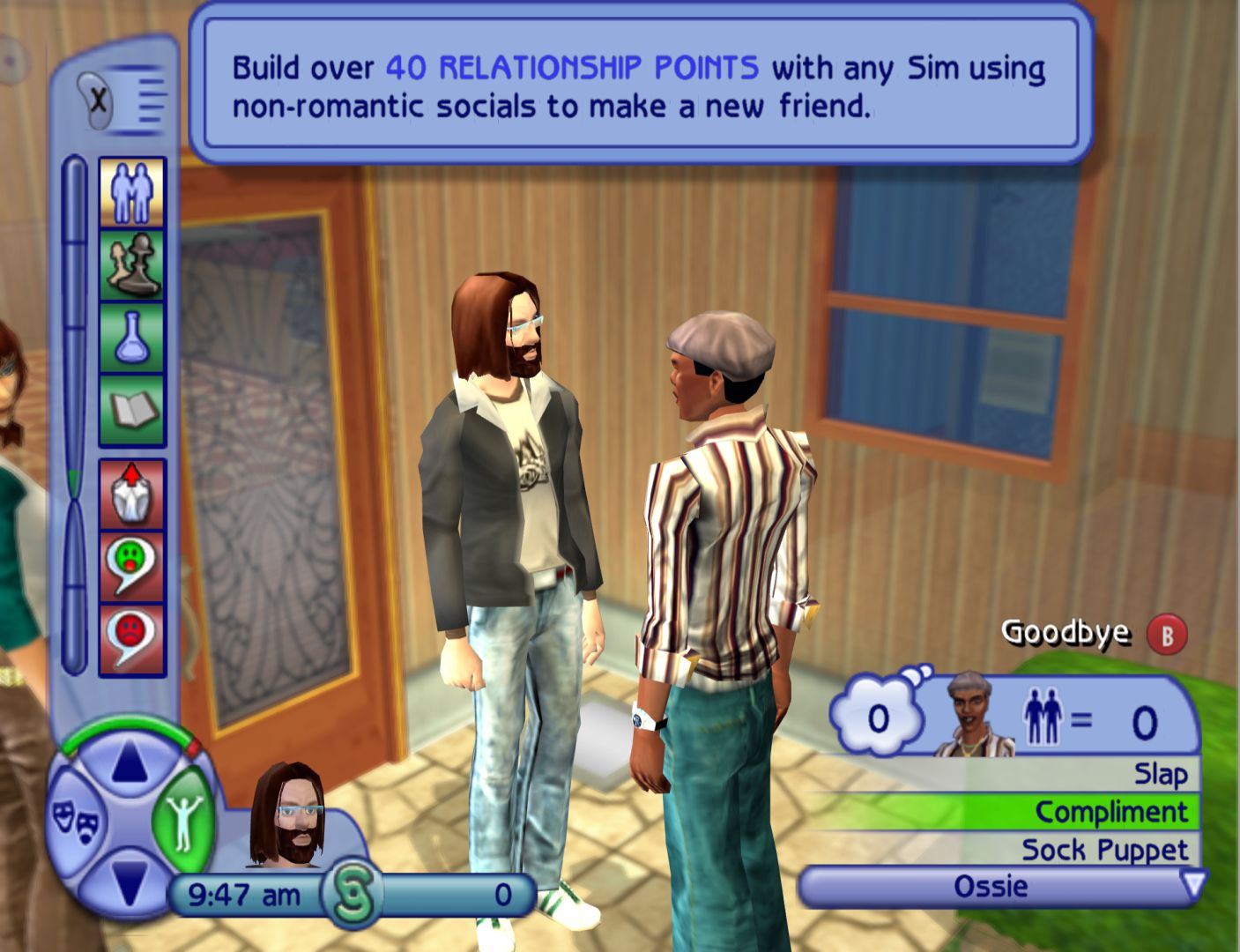 Like The Sims and Bustin’ Out, the console version of The Sims 2 is very different to the PC version, being its own game using some of the ideas of the main game. The big thing is that, instead of fulfilling basic needs, Sims have wants and fears that can affect their mood. This essentially gives you objectives to follow, which is utilised in the story mode.