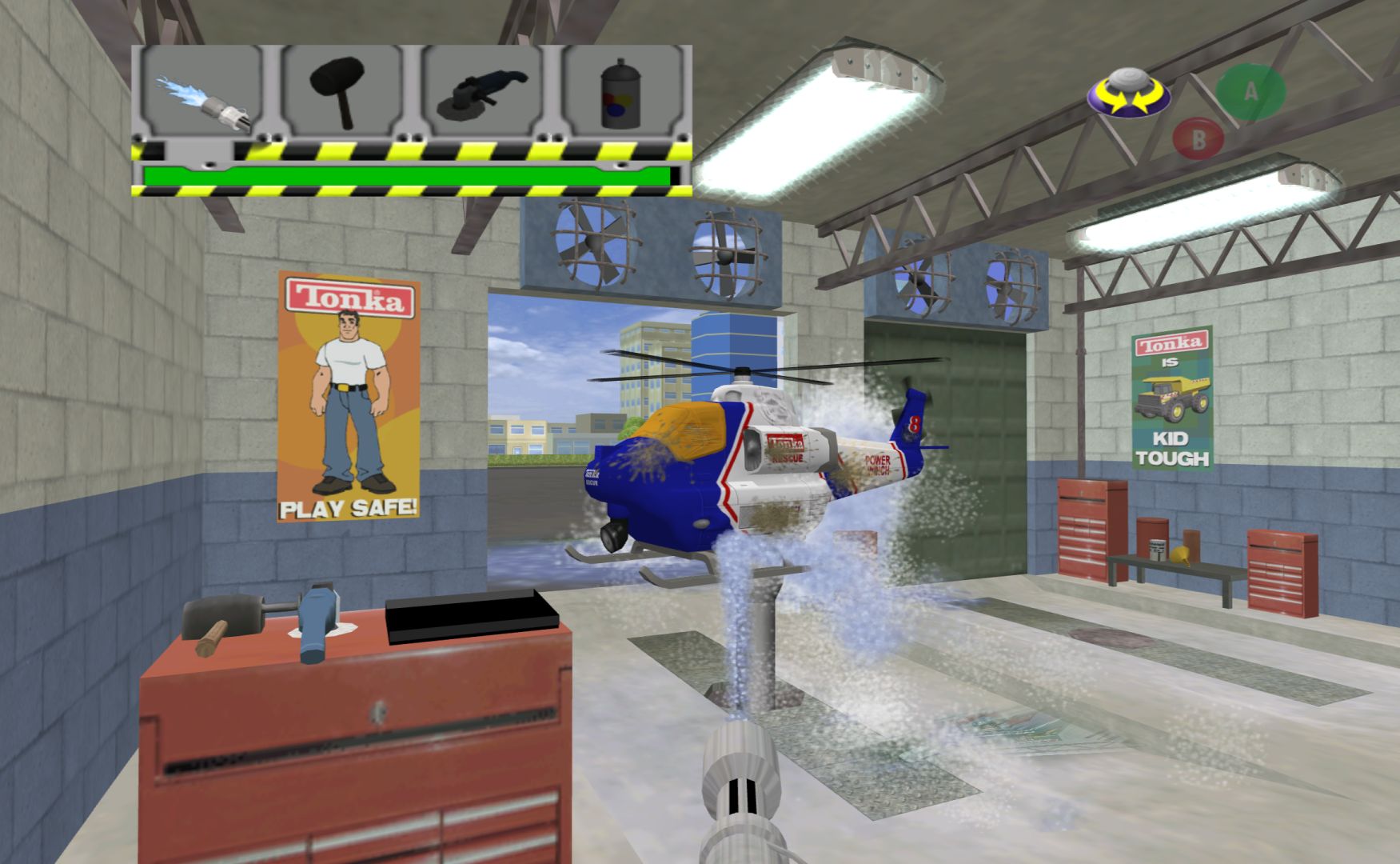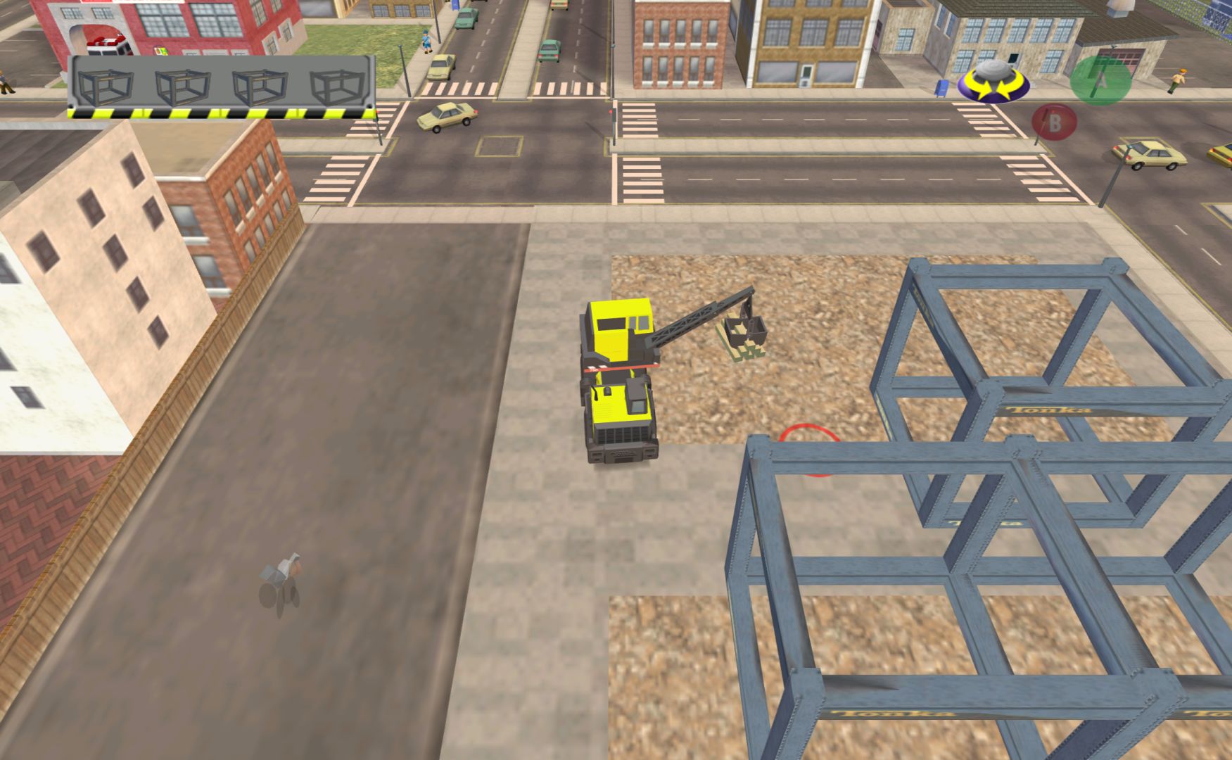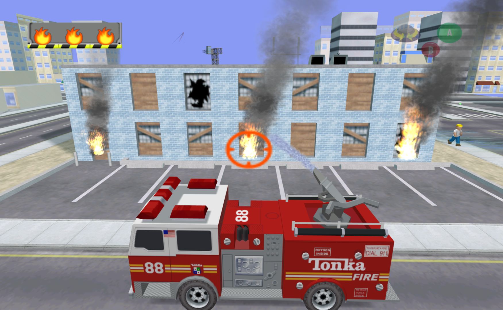 Tonka is a brand of toy vehicles in America, and this game is driving vehicles around to complete tasks. A fire engine, police car, helicopter and three construction vehicles. The entire game is comprised of four levels, each with nine missions where you slowly drive around, following an arrow, then press A to complete the task. There’s no way to fail anything, no time limits and you have to do things exactly the way the game wants to – quite often if you have three things to pick up, you trying to pick one that the arrow isn’t pointing to simply won’t work.