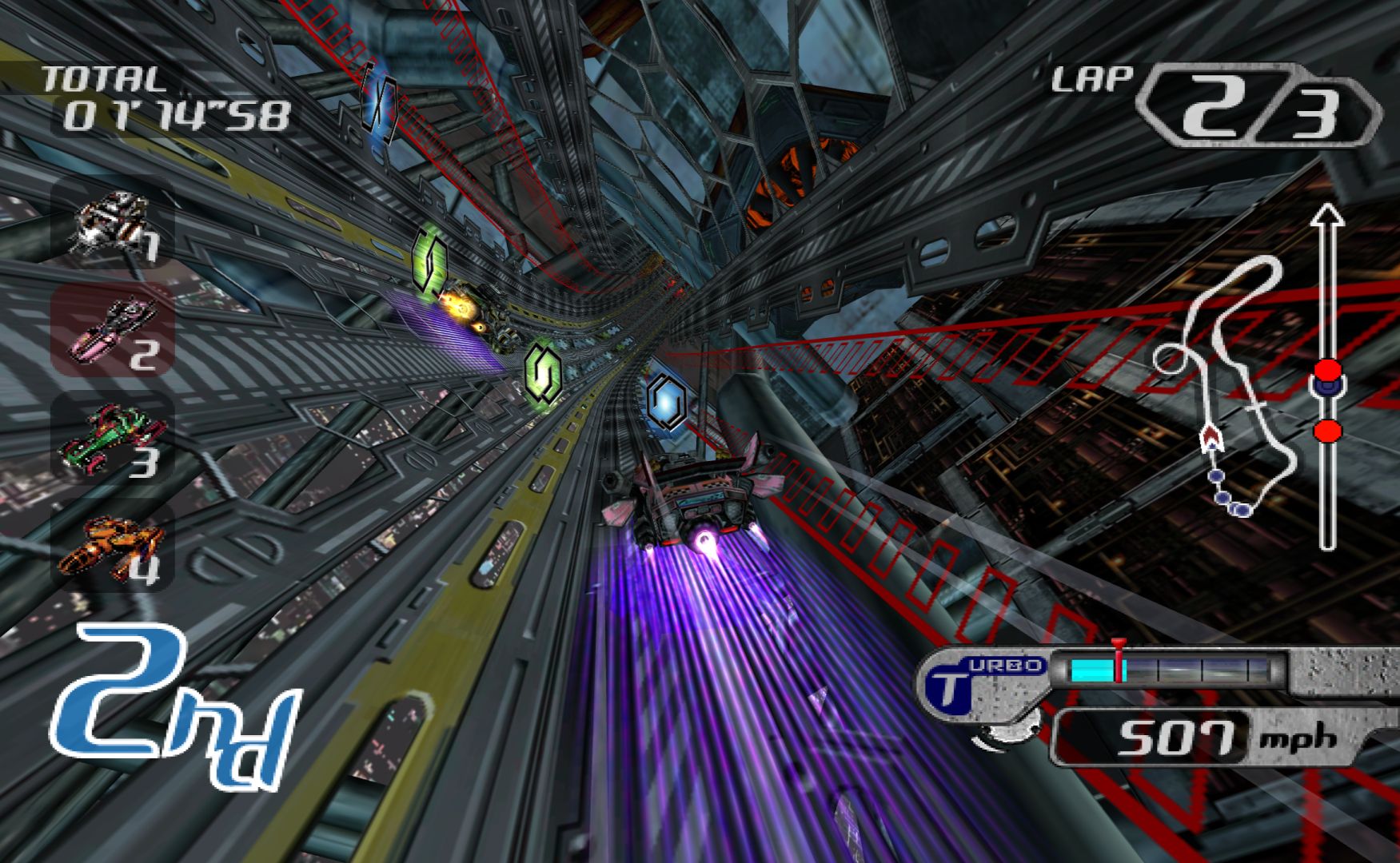 After NDcube made F-Zero: Maximum Velocity, they pitched a 3D F-Zero game for the GameCube. This concept was rejected, likely because Nintendo were already collaborating with Sega for one. NDcube took this concept and turned it into their own game. In recent years, F-Zero-style games have been most welcome (such as Fast Racing Neo), but this came out a few months before F-Zero GX, so people weren’t exactly hungry for an alternative.