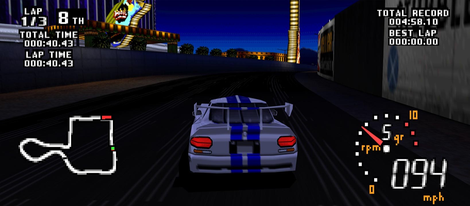 The handling is the main thing I had an issue with here, with cars sliding about rather than actually tuning. N64 Magazine says that you need to get used to this method of driving, but I just couldn’t get the hang of it. To make matters worse, the CPU racers will just plough right into you, and whenever you’re in the pack, you bounce around like a dodgem car. While they feel overly aggressive, I feel like it’s more that they just aren’t programmed to react to your car.